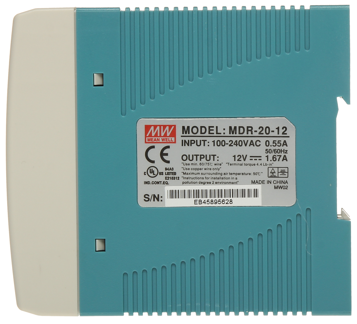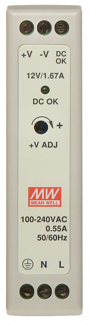 Output voltage: 12 V DC ; Output voltage adjustment: 10.8 ... 13.2 V ; Maximal load: 1.67 A ; Output power: 20 W ;
