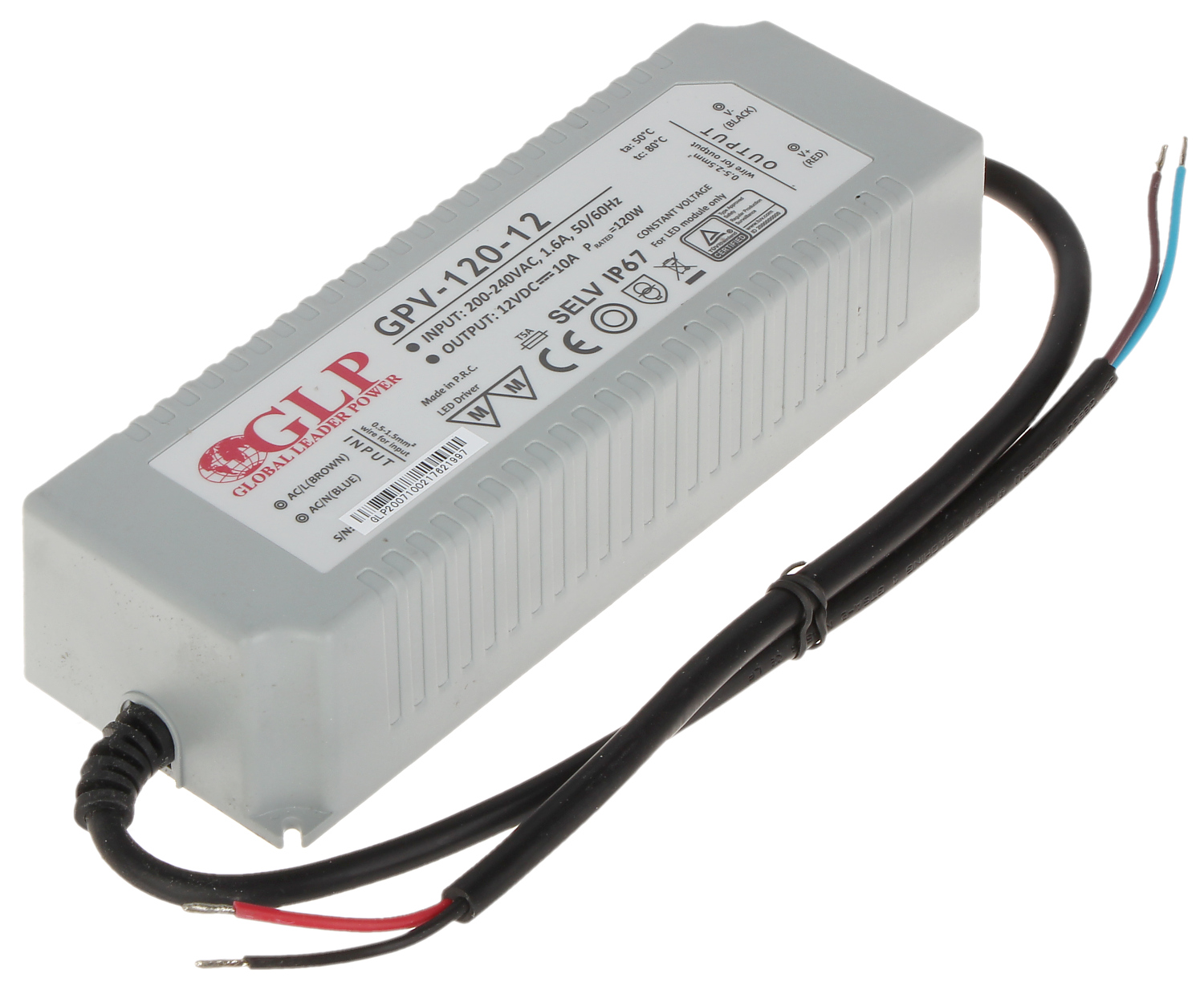 Output voltage: 12 V DC ; Maximal load: 10 A ; Output power: 120 W ; "Index of Protection": IP67 ;