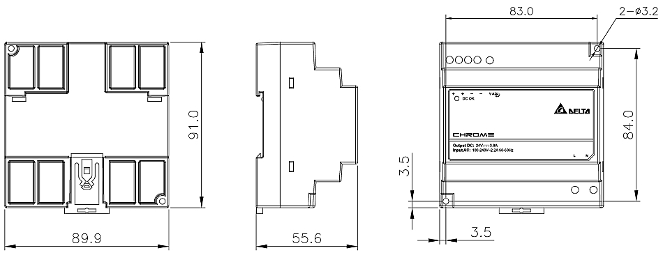 Output voltage: 24 V DC ; Output voltage adjustment: 20.0 ... 24.48 V ; Maximal load: 3.8 A ; Output power: 91.2 W ;