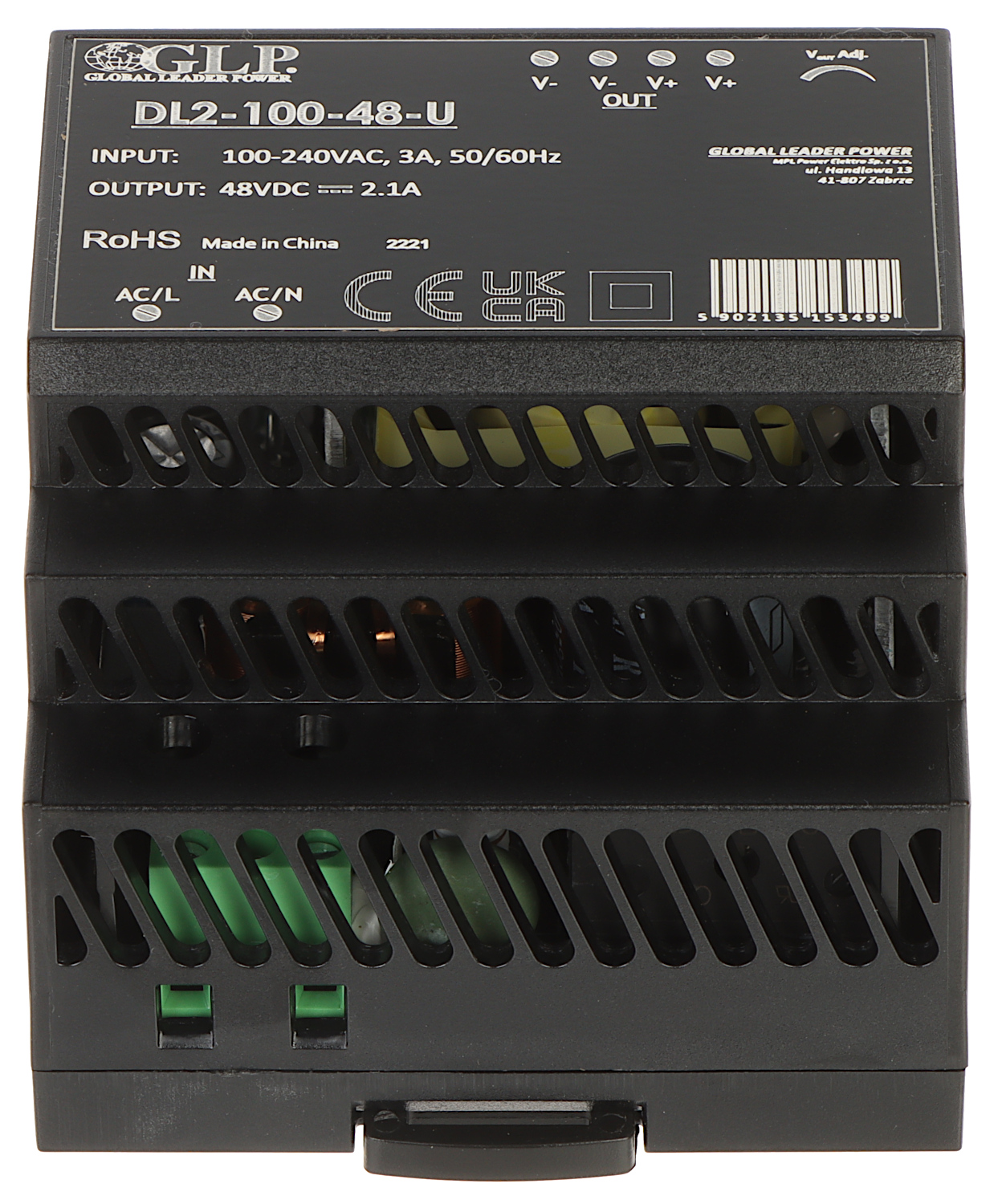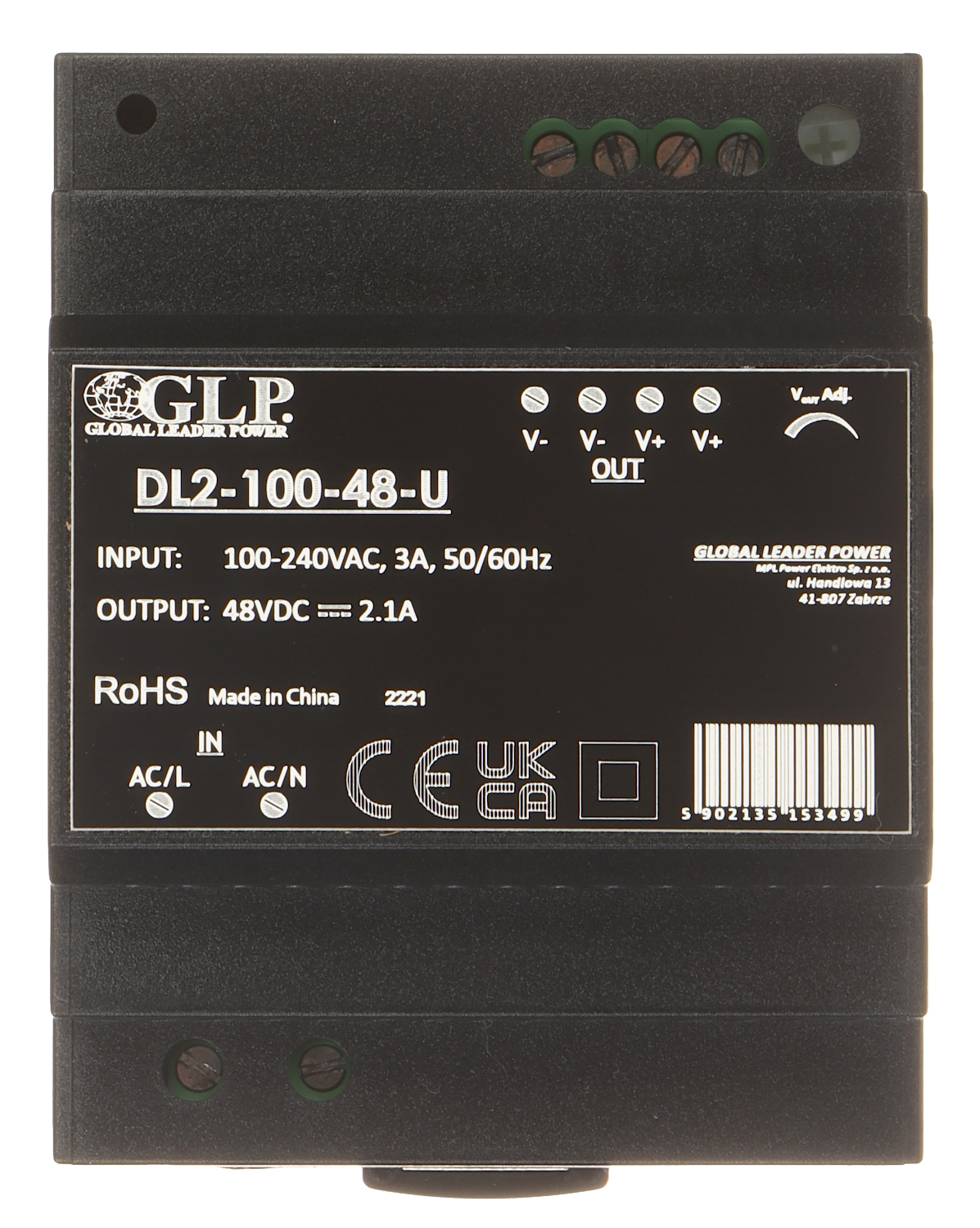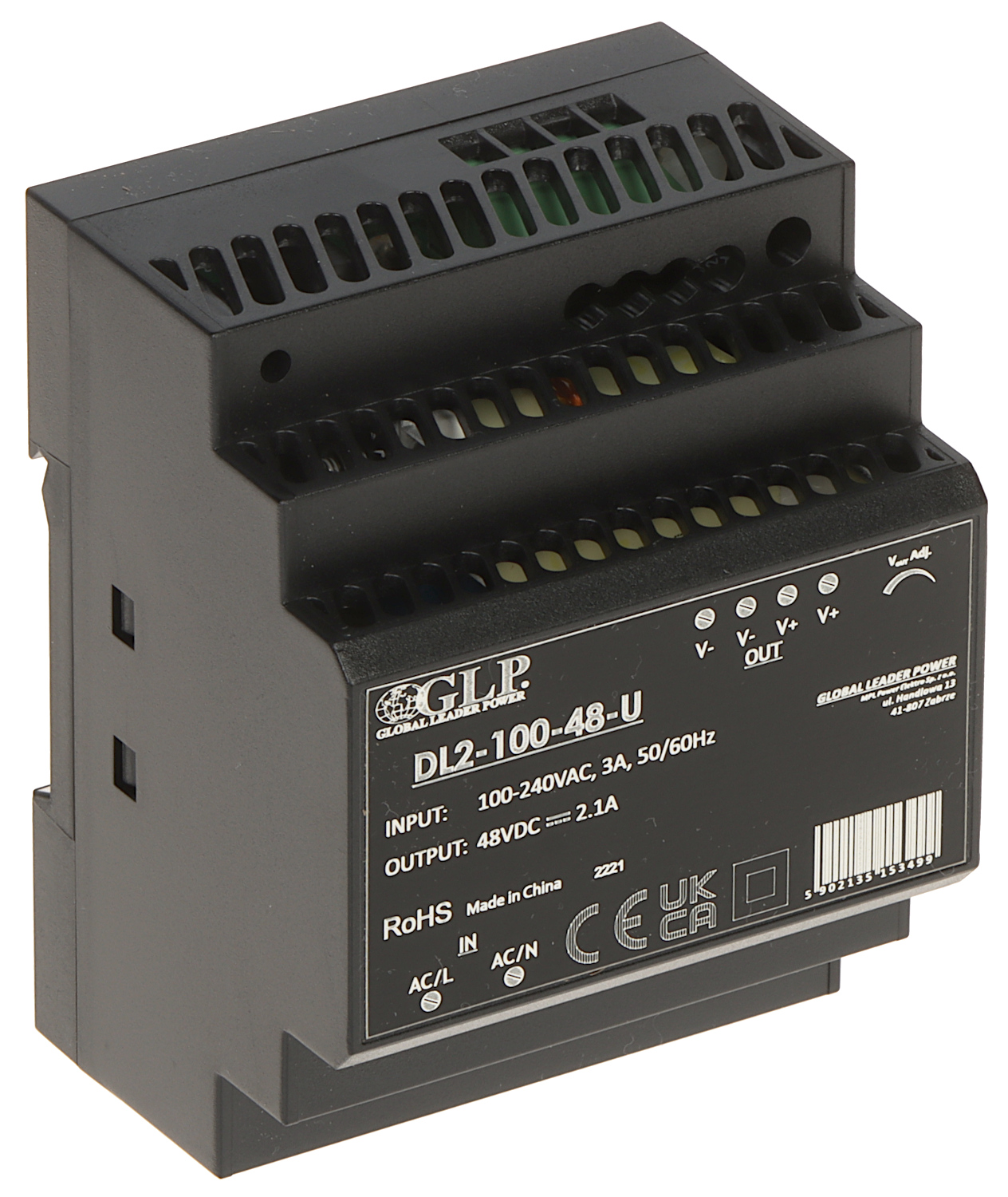 Output voltage: 48 V DC ; Output voltage adjustment: 43.2 ... 55.2 V DC ; Maximal load: 2.1 A ; Output power: 100.8 W ;