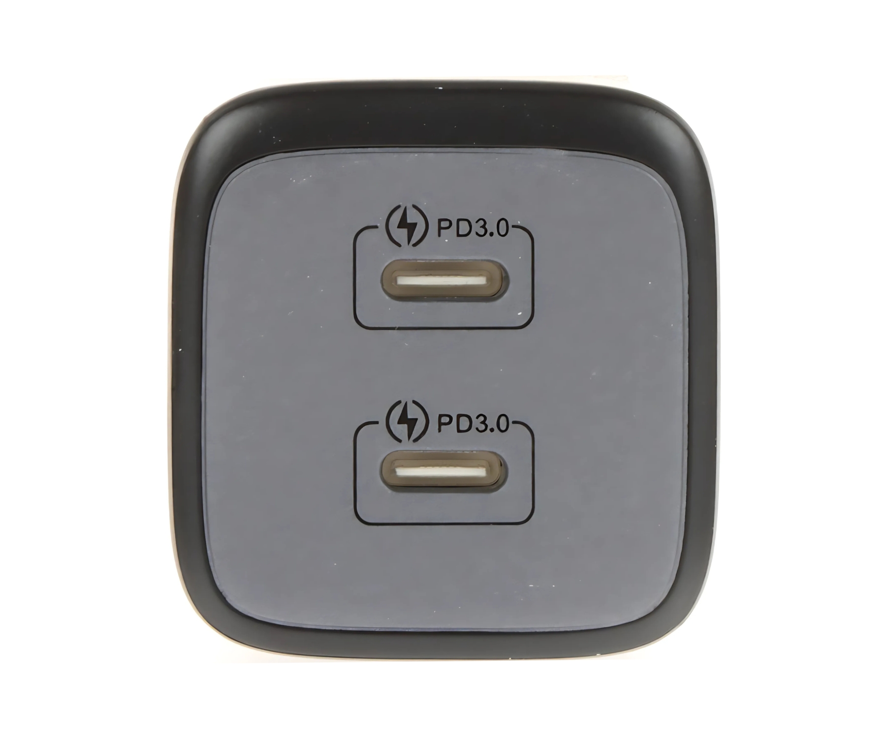 Output power: max. 45 W (total) ; Output: 2 x USB-C output :   5 V / 3 A,   9 V / 3 A,   12 V / 3 A,   15 V / 3 A,   20 V / 2.25 A ; ; Main features: GaN type charger, Quick Charge 3.0, Power Delivery ; Input voltage: 100 ... 240 V AC ; Manufacturer / Brand: Delta Power ;