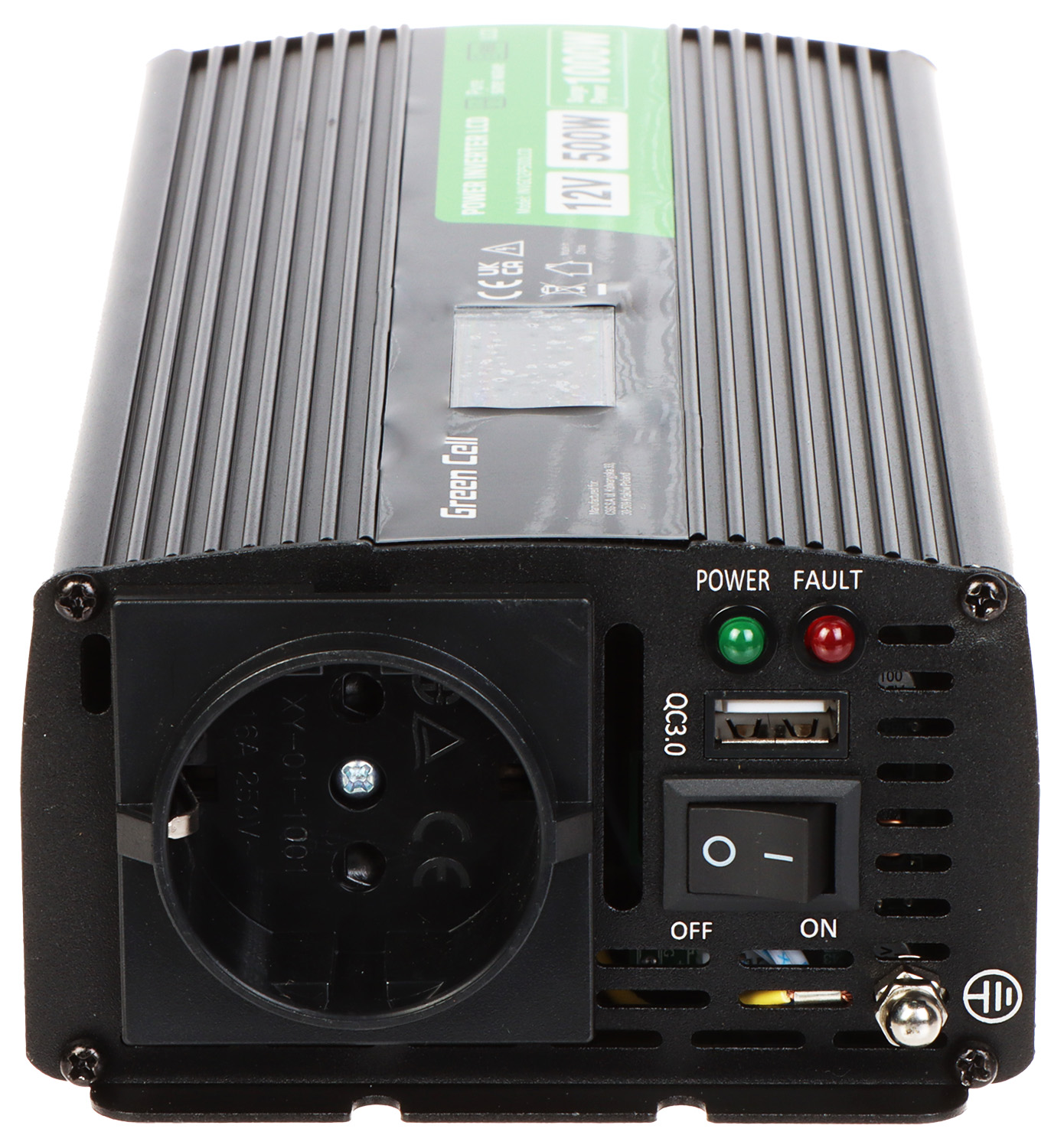 Type: Increasing the voltage, DC/AC ; Power voltage: 12 V DC ; Output voltage: 230 V AC ; Power: 1000 W (max), 500 W (continuous operation) ; Length of the cables: 0.6 m ; Main features: Built-in USB charger in the Quick Charge 3.0 (5/9/12 V; 18W) standard ;