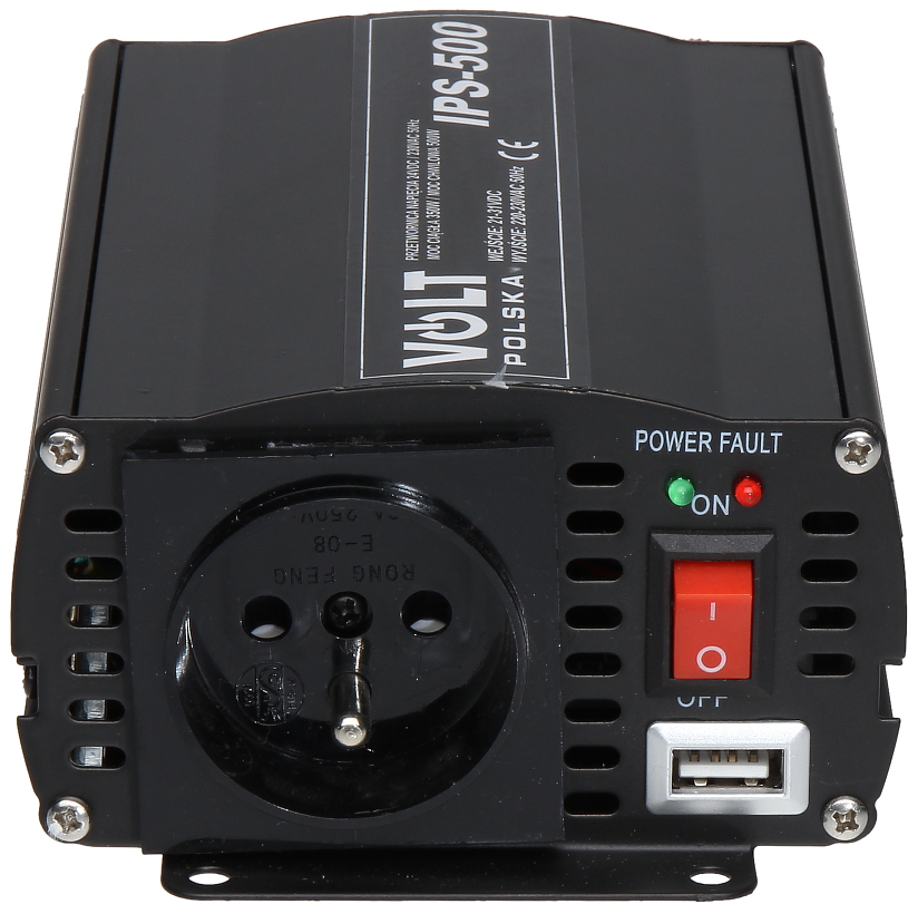 Type: Increasing the voltage, DC/AC ; Power voltage: 21 V ... 31 V DC ; Output voltage: 225 V ... 235 V AC, 5 V DC - USB ; Output voltage adjustment; Power: 500 W (max) ;