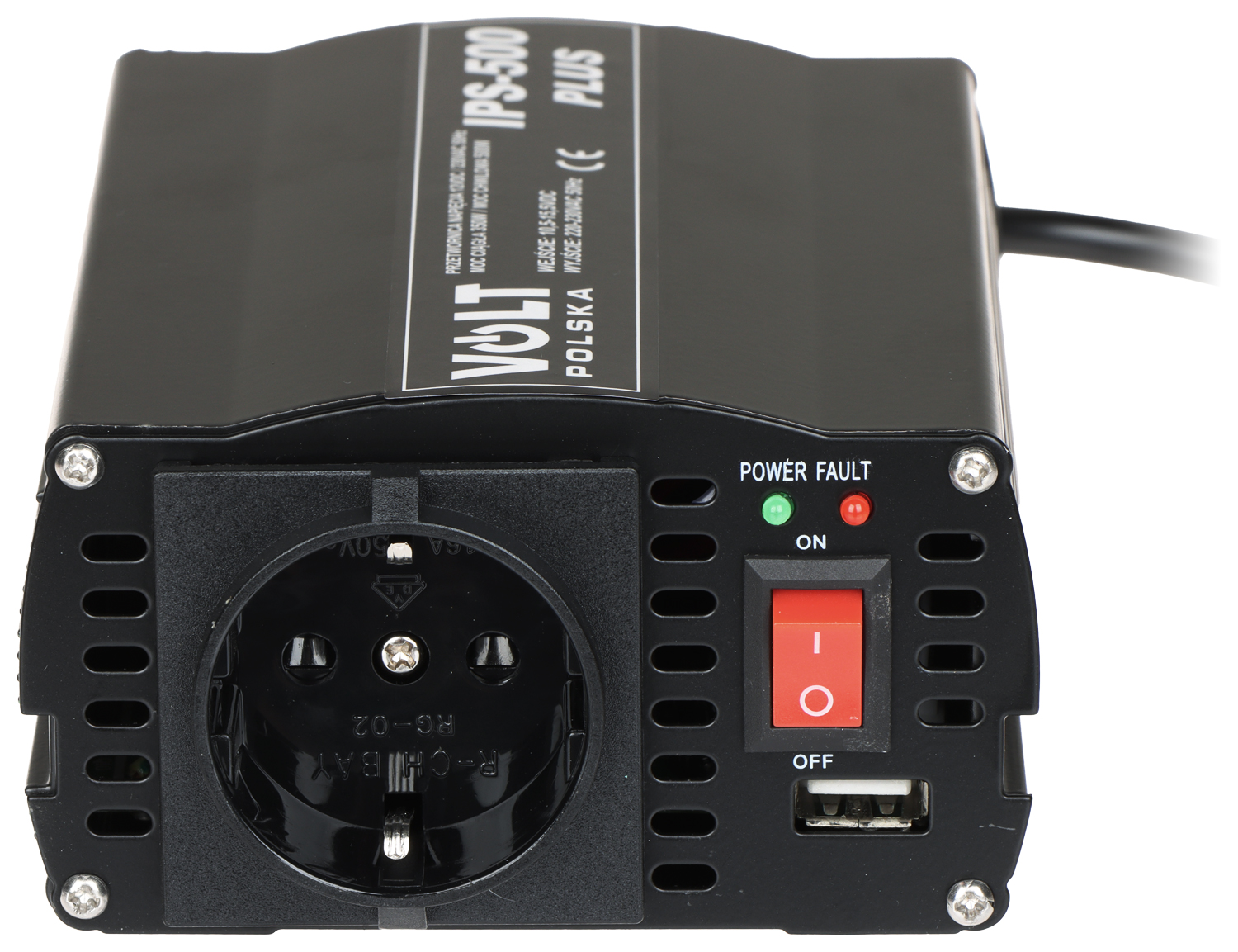 Type: Increasing the voltage, DC/AC ; Power voltage: 10.5 V ... 15.5 V DC ; Output voltage: 225 V ... 235 V AC, 5 V DC - USB ; Power: 500 VA (max) ;