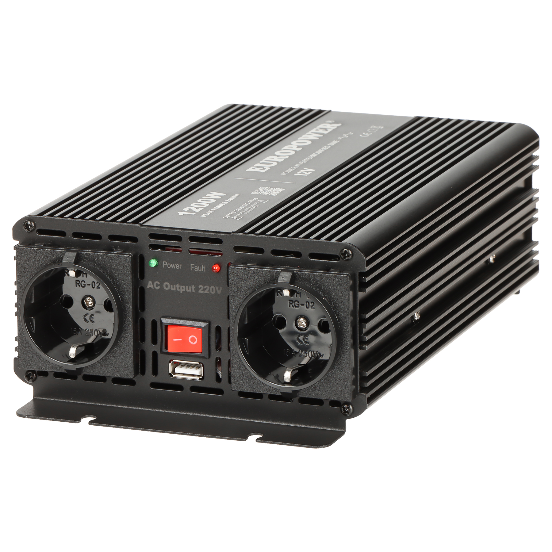 Type: Increasing the voltage, DC/AC ; Power voltage: 12 V DC ; Output voltage: 230 V AC (Modified Sine Wave) ; Power: 2400 W (instantaneous operation), 1200 W (continuous operation) ; Length of the cables: 0.5 m ;