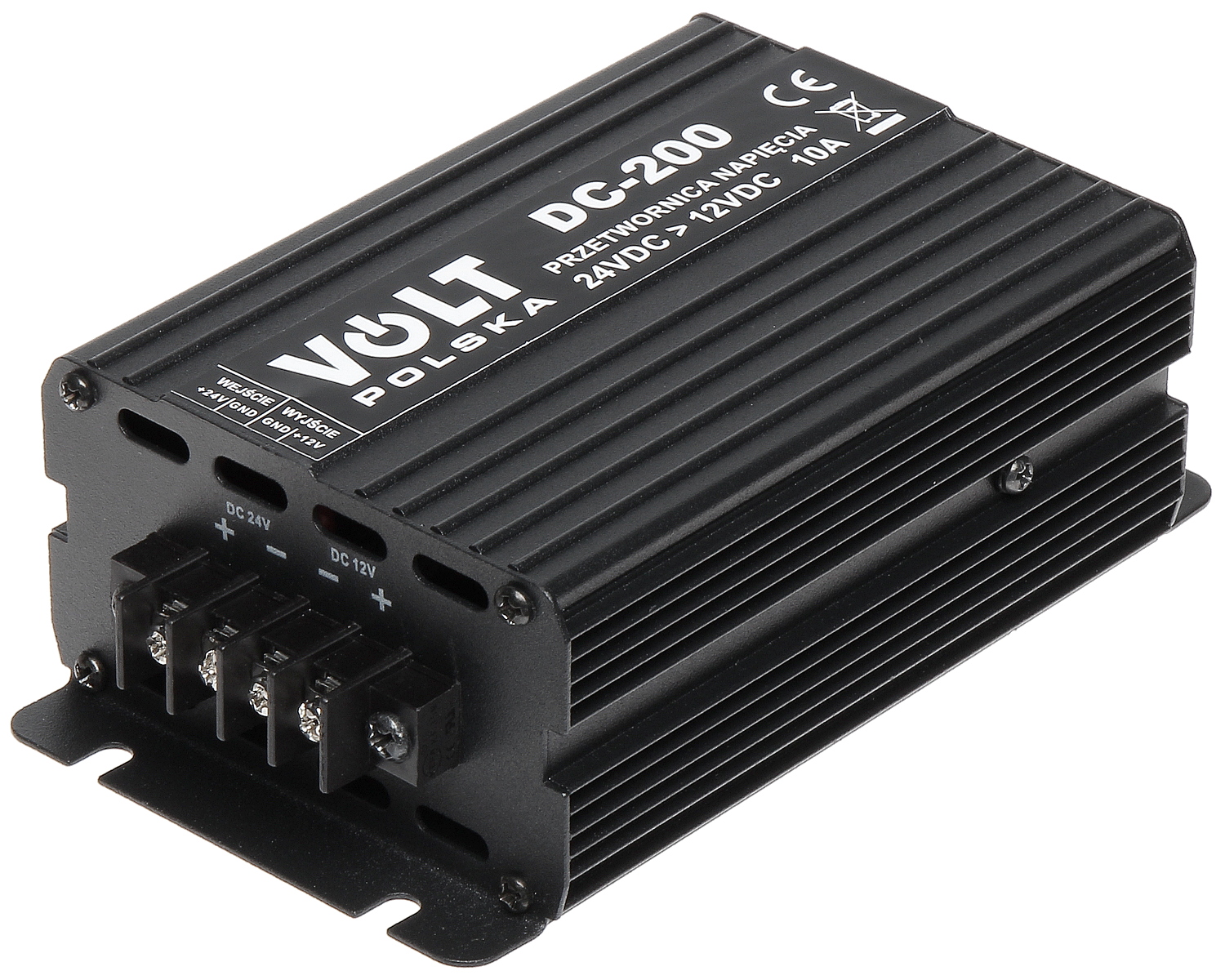 Type: Decreasing the voltage, DC/DC ; Power voltage: 21 V ... 30 V DC ; Output voltage: 12 V ... 14 V DC ; Output current: 10 A (continuous operation) ; Power: 120 W (continuous operation) ; Protections: Overvoltage, Undervoltage, Short-circuit ;