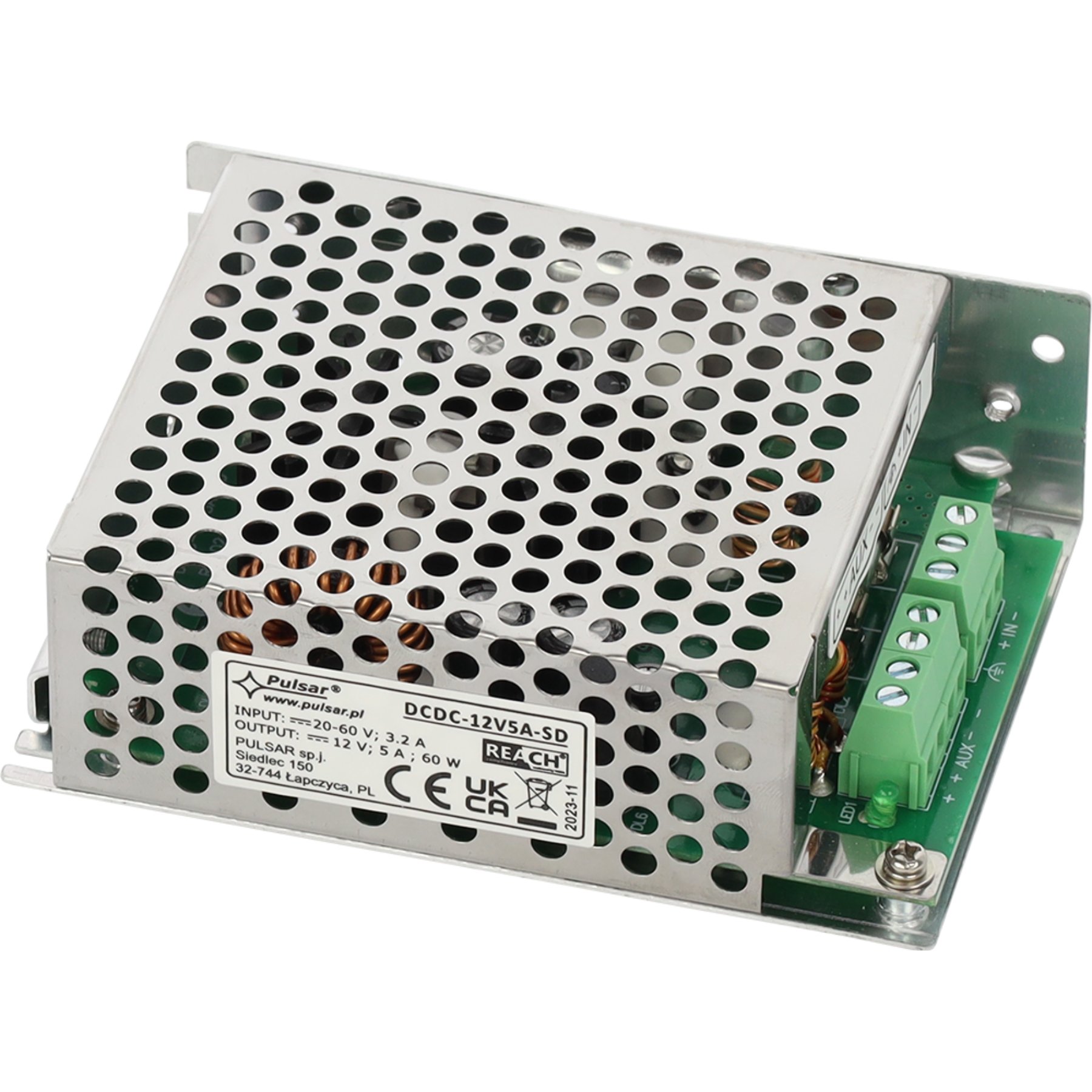 Type: Decreasing the voltage, DC/DC ; Power voltage: 20 V ... 60 V DC ; Output voltage: 12 V DC ; Output current: 5 A (max) ; Power: 60 W (max) ;