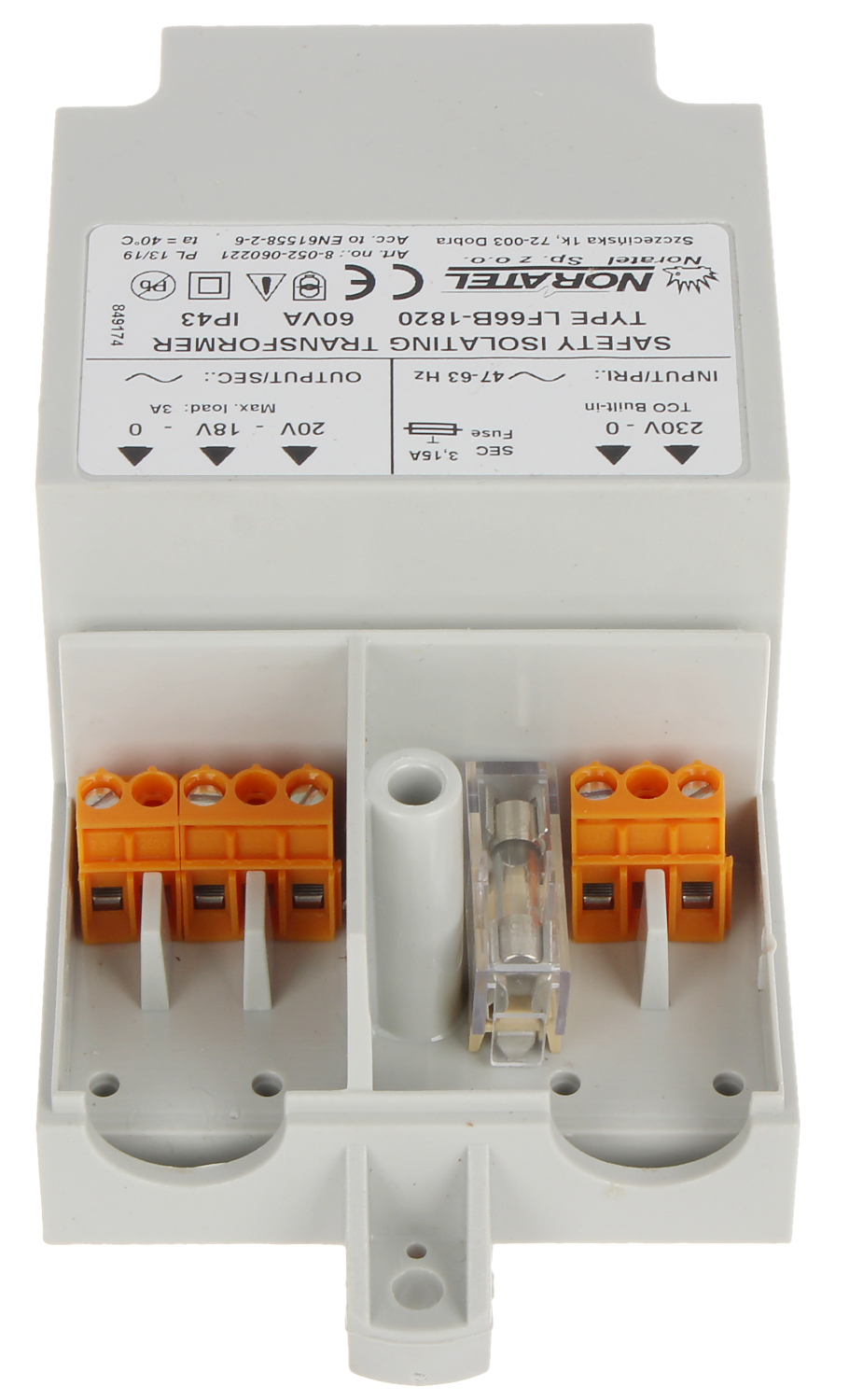 The power adapter is intended to be used in installations, which according to the CE Directives require the use of safety isolating transformer; Power voltage: 230 V AC ; Output voltage: 18 V, 20 V AC ; Maximal load: 3 A ;