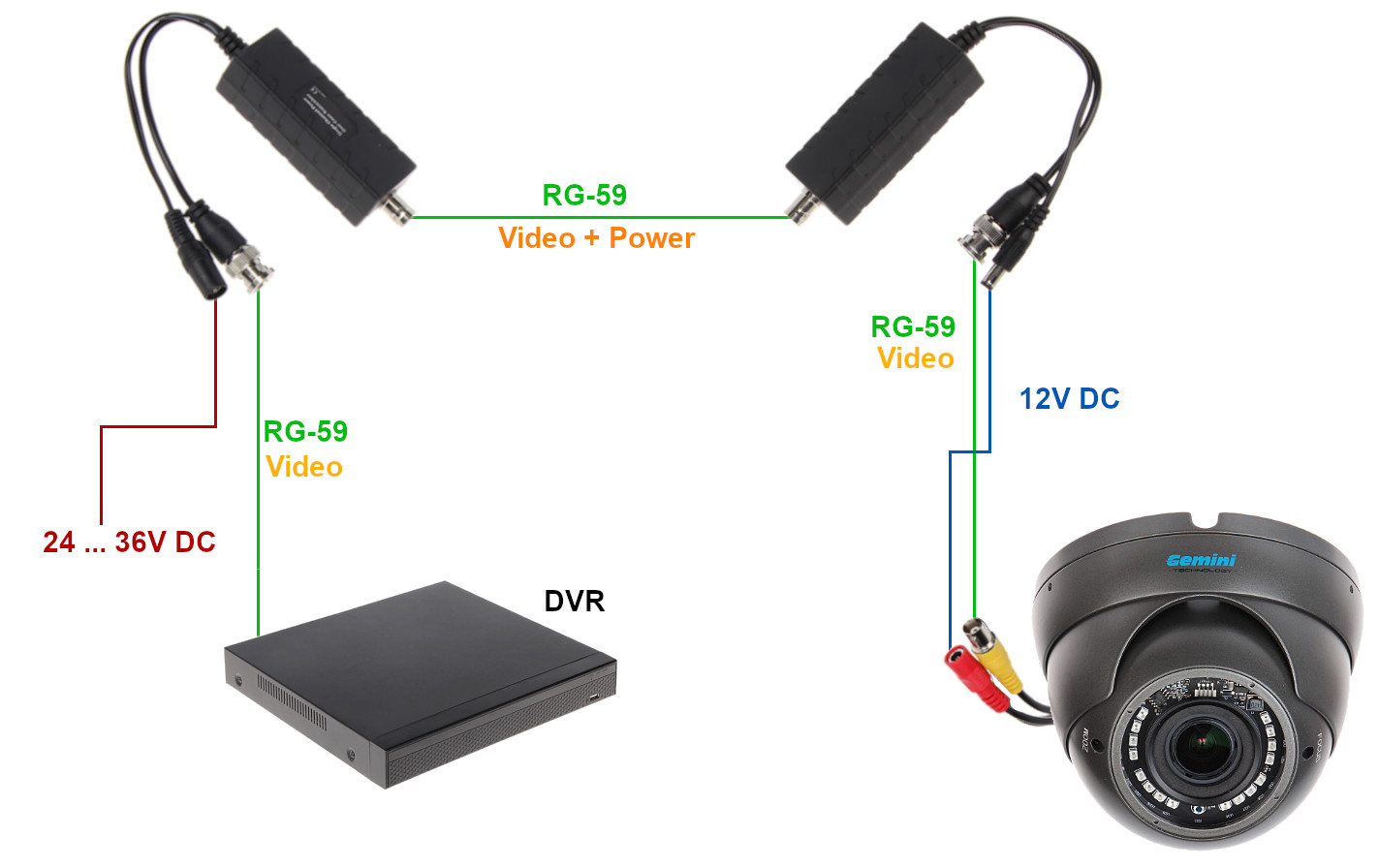 • 100 m @ 500 mA - RG59
