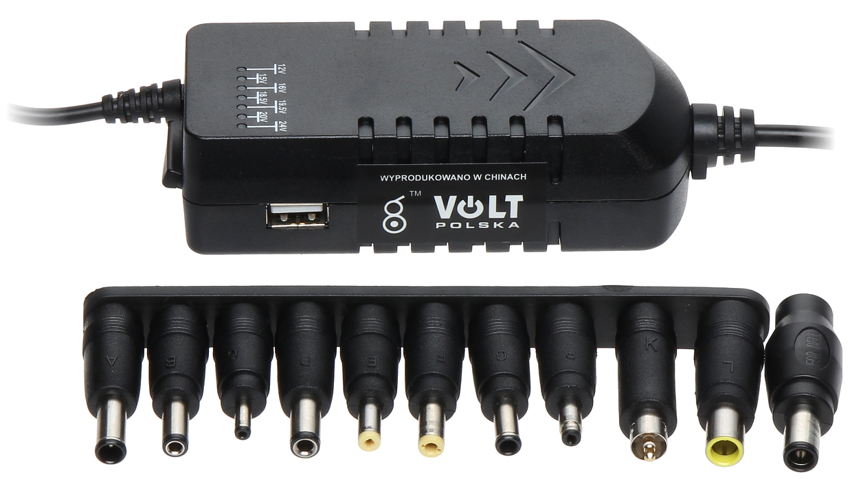 Car, universal converter dedicated to power laptops; Type: Decreasing and increasing the voltage, DC/DC ; Power voltage: 11 ... 28 V DC ; Output voltage: USB, 5 V DC, 15 V, 16 V, 18, (18.5) V, 19 (19.5) V, 20 V, 22 V, 24 V DC ; Power: 90 W ;