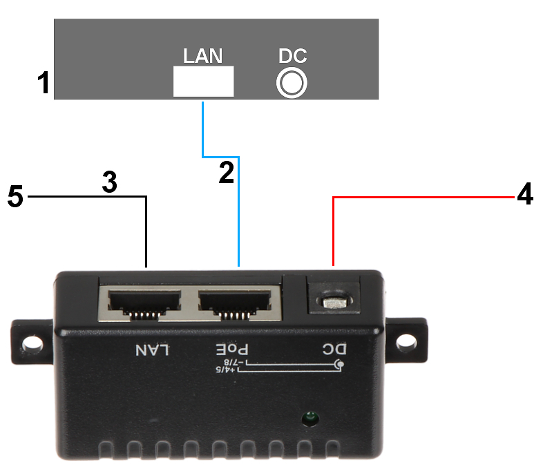 LED indicators: | plug the power source to thr PoE adapter |