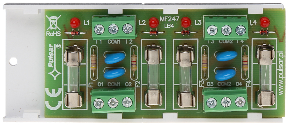 The AWZ-533 is a passive device and allows to distribute the power supply; Number of power outputs: ; Max. output current for single output: 1.5 A ; Protection type: 4 x 1.5 A Fuse ;