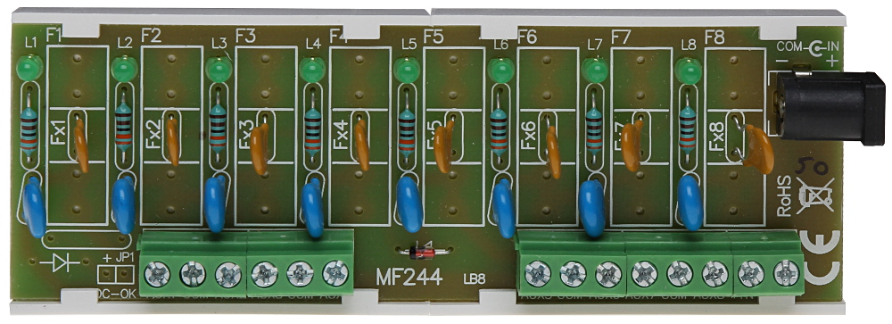 The AWZ-578 is a passive device and allows to distribute the power supply; Number of power outputs: ; Max. output current for single output: 0.5 A ; Protection type: 8 x 0.5 A - PTC Polymer Fuse ;