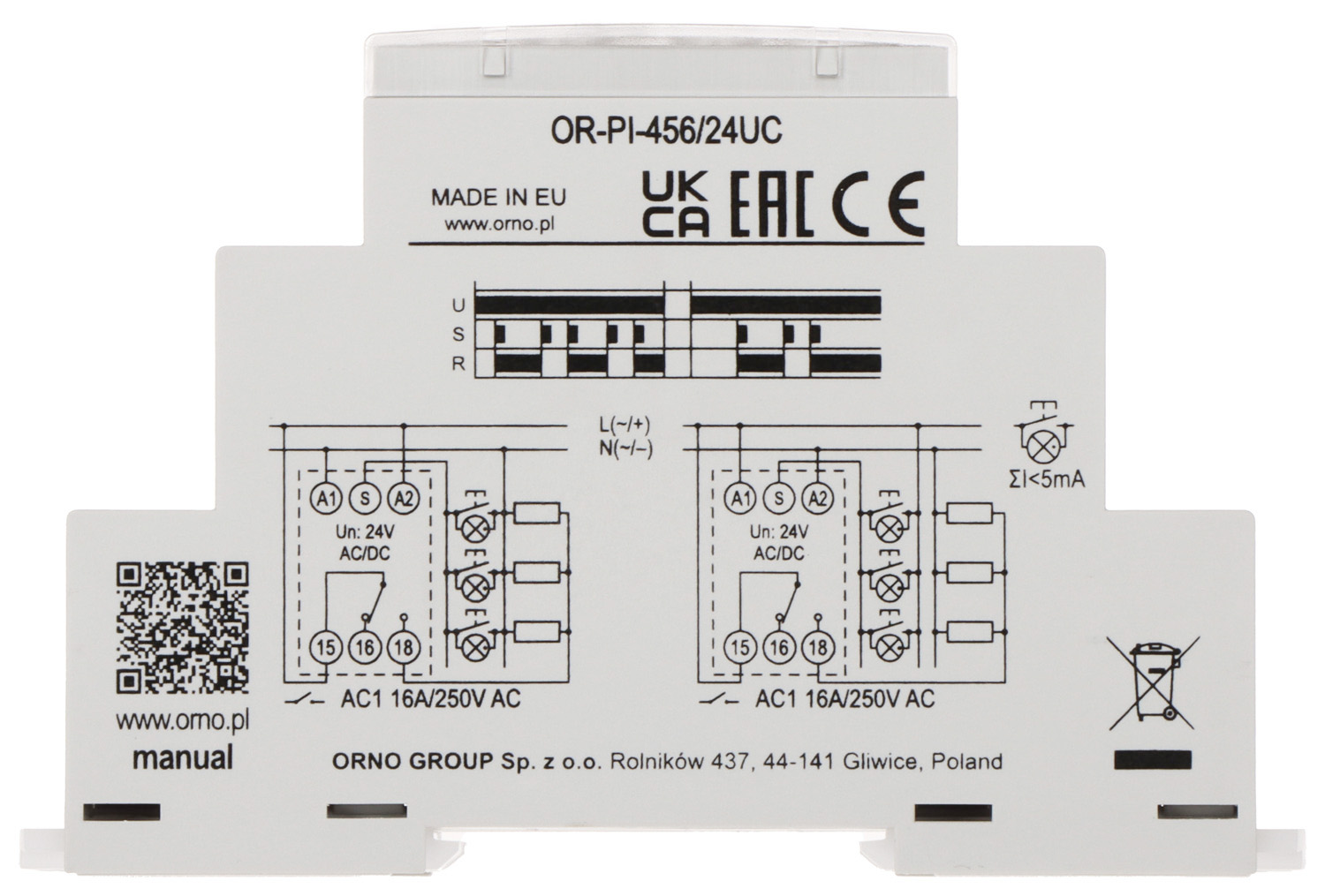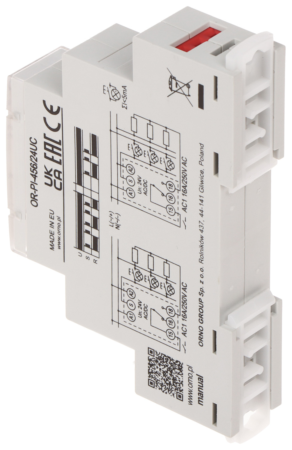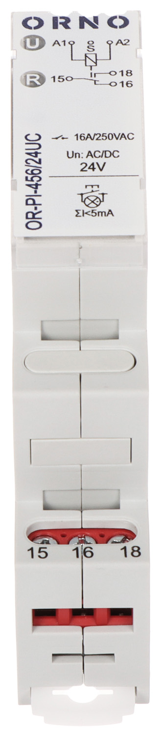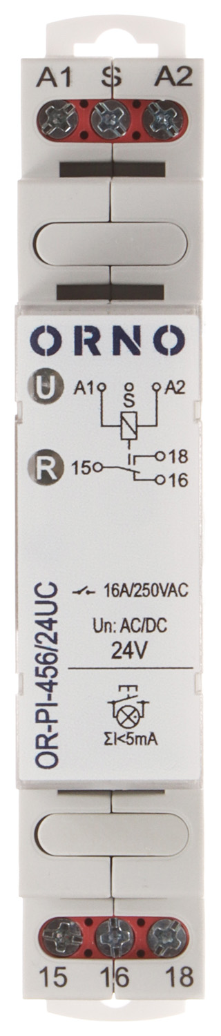 It can be used to increase maximal load of controller transistor output line and for galvanic isolation between output line and load point; Number of relay outputs: ; Power supply: 24 V DC / AC ; Relay maximal load: 16 A / 250 V AC ; Output: 1 x NO/NC ; Manufacturer / Brand: ORNO ;
