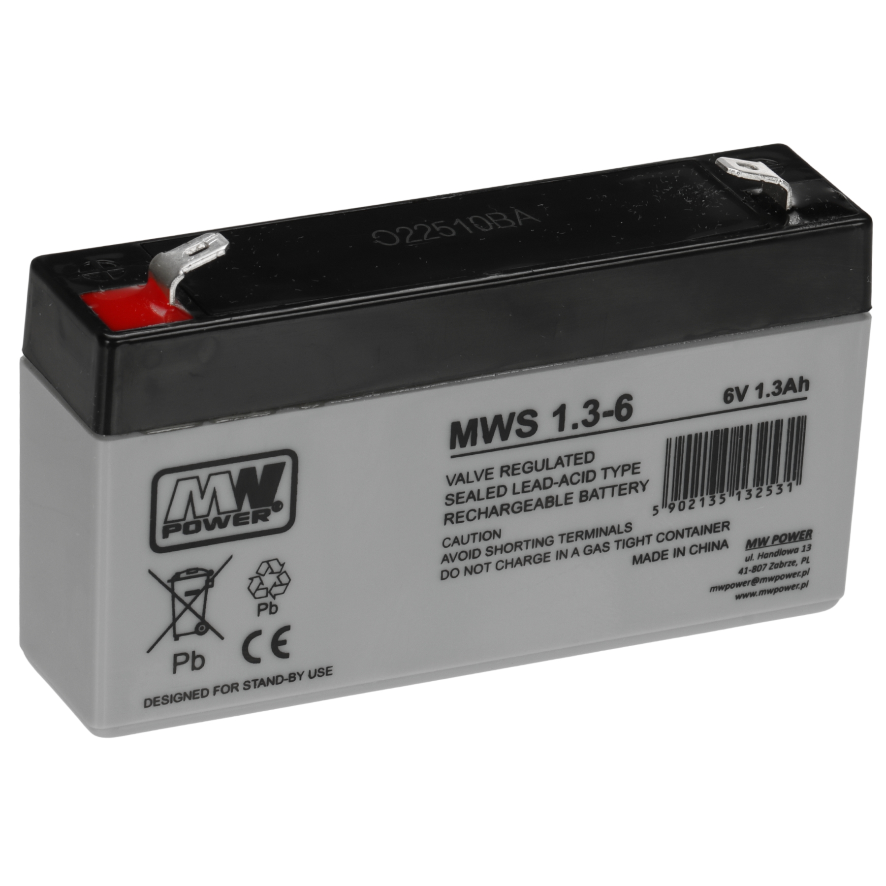 Battery capacity: 1.3 Ah ; Rated voltage: 6 V ; Battery type: Maintenance-free AGM (Absorbent Glass Mat) battery ; Battery lifetime: ≤ 3 years ;