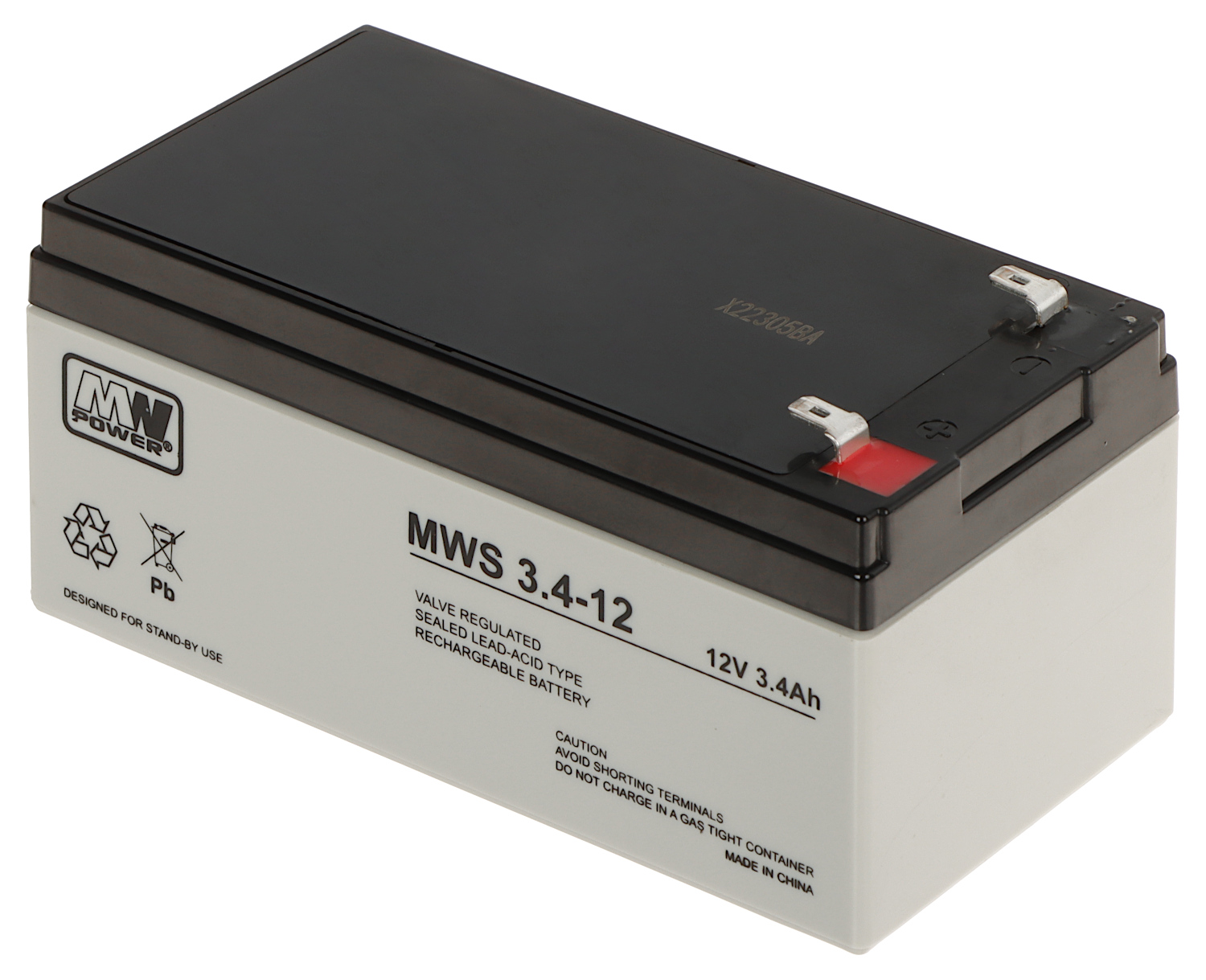 Battery capacity: 3.4 Ah ; Rated voltage: 12 V ; Battery type: Maintenance-free AGM (Absorbent Glass Mat) battery ; Battery lifetime: 3 ... 5 years ;