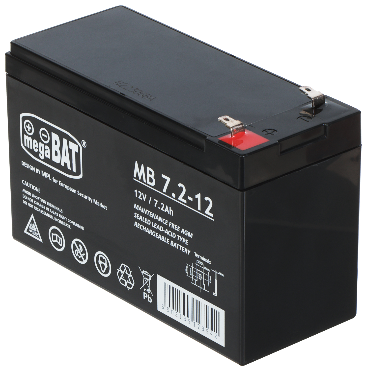 Battery capacity: 7.2 Ah ; Rated voltage: 12 V ; Battery type: Maintenance-free AGM (Absorbent Glass Mat) battery ; Battery lifetime: 3 ... 5 years ;