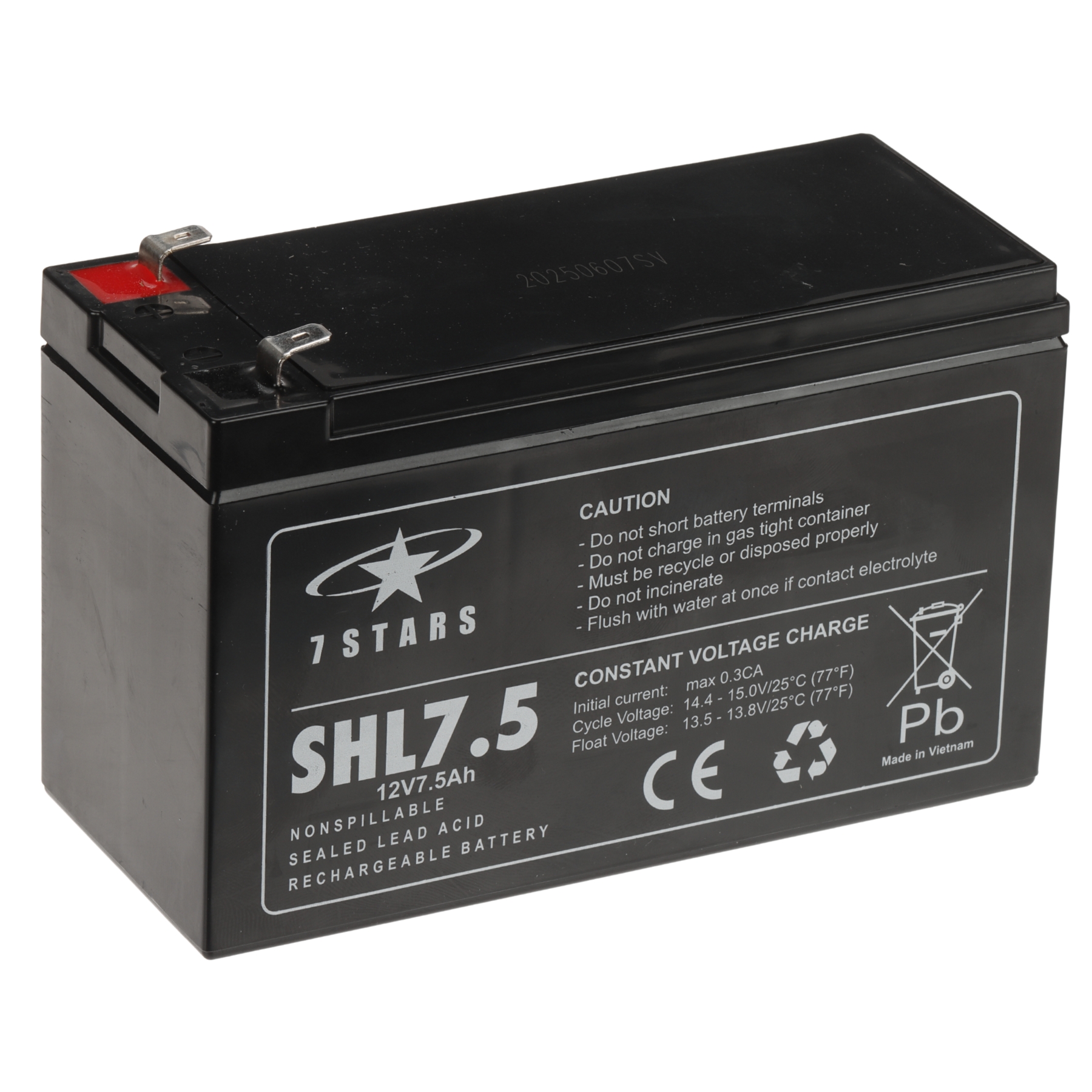 Battery capacity: 7.5 Ah ; Rated voltage: 12 V ; Battery type: Maintenance-free AGM (Absorbent Glass Mat) battery, VRLA ; Battery lifetime: 10 years ;