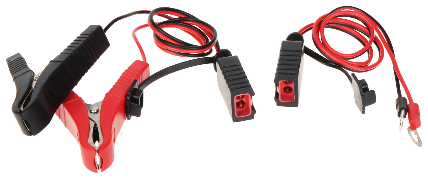 • The set includes two types of cable ends for connecting the battery (clamps and eyelet connectors)