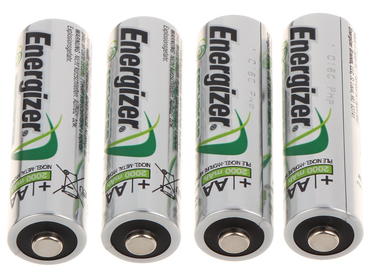 Battery type: Ni-MH : AAA, AA, In the kit : 4 x AA - 2000 mAh ; Typical battery charge time: 4 ... 9 h ; Battery charging current: AAA : 0.150 A, AA : 0.300 A ; LED indicator;
