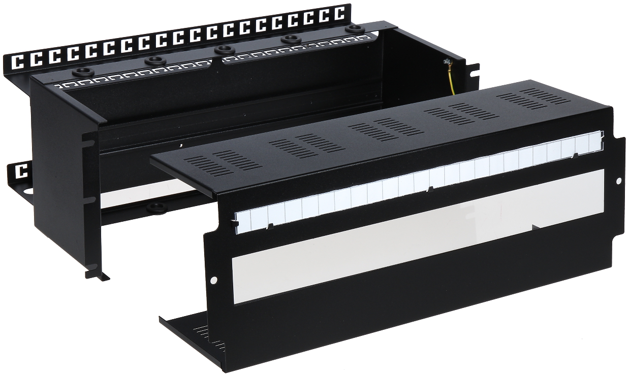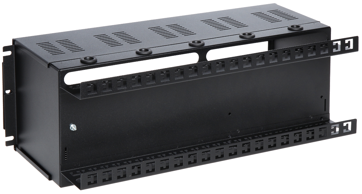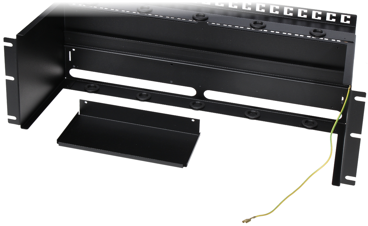 The enclosure with a DIN rail for RACK cabinets is intended for mounting equipment located inside DIN enclosures, for RACK 19" cabinets; The enclosure can accommodate max. 24 fuses, 1 S wide.; Width: 19 " ; Height: 4 U ;