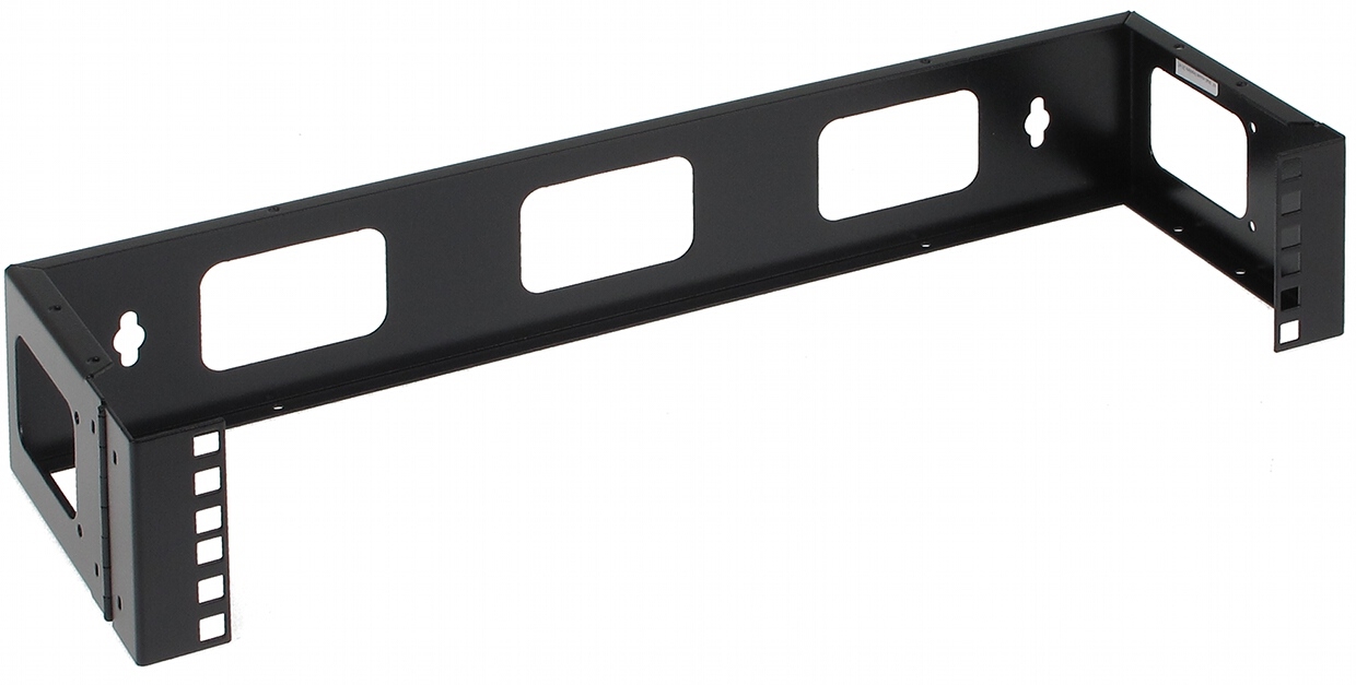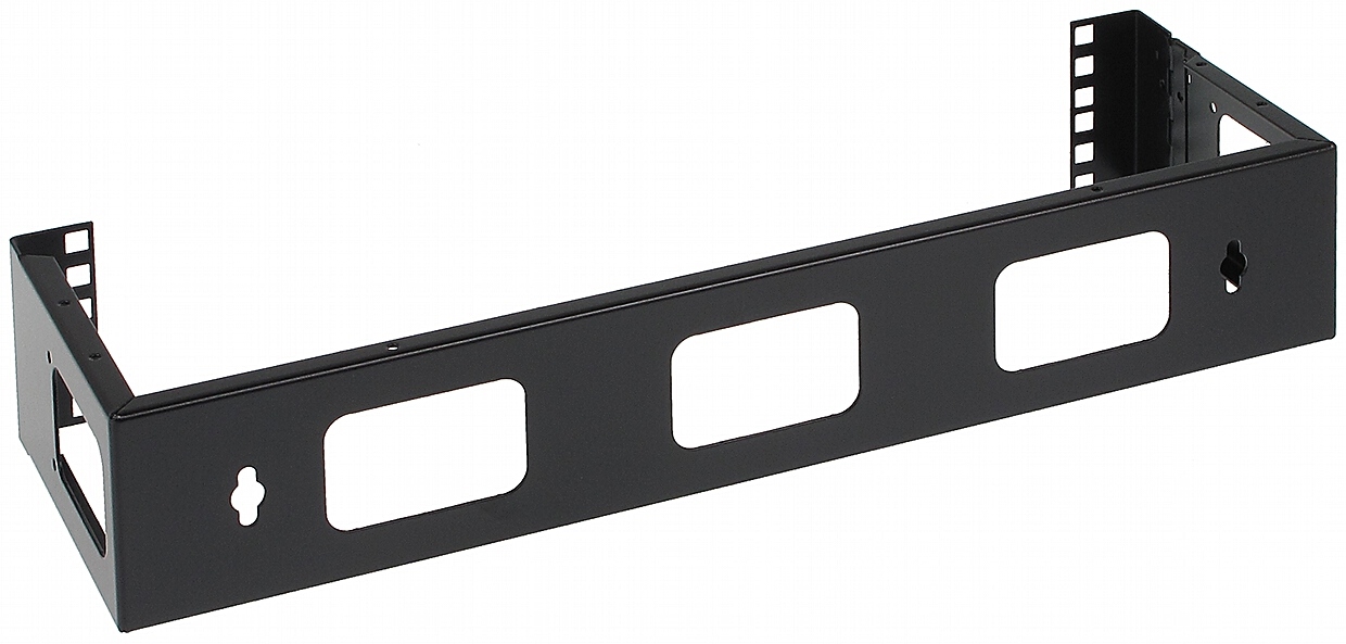 The frame is intended for mounting RACK devices directly on wall; The hinge on one of the sides ensures easy access to the devices from the rear without having to dismantle them from the frame, for instance to cables connections;