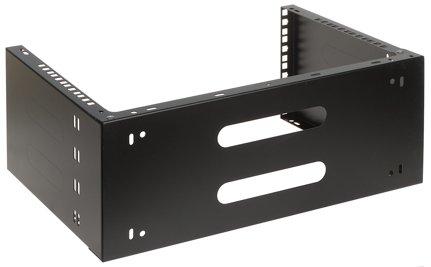 The frame is intended for mounting RACK devices directly on wall; The hinge on one of the sides ensures easy access to the devices from the rear without having to dismantle them from the frame, for instance to cables connections;