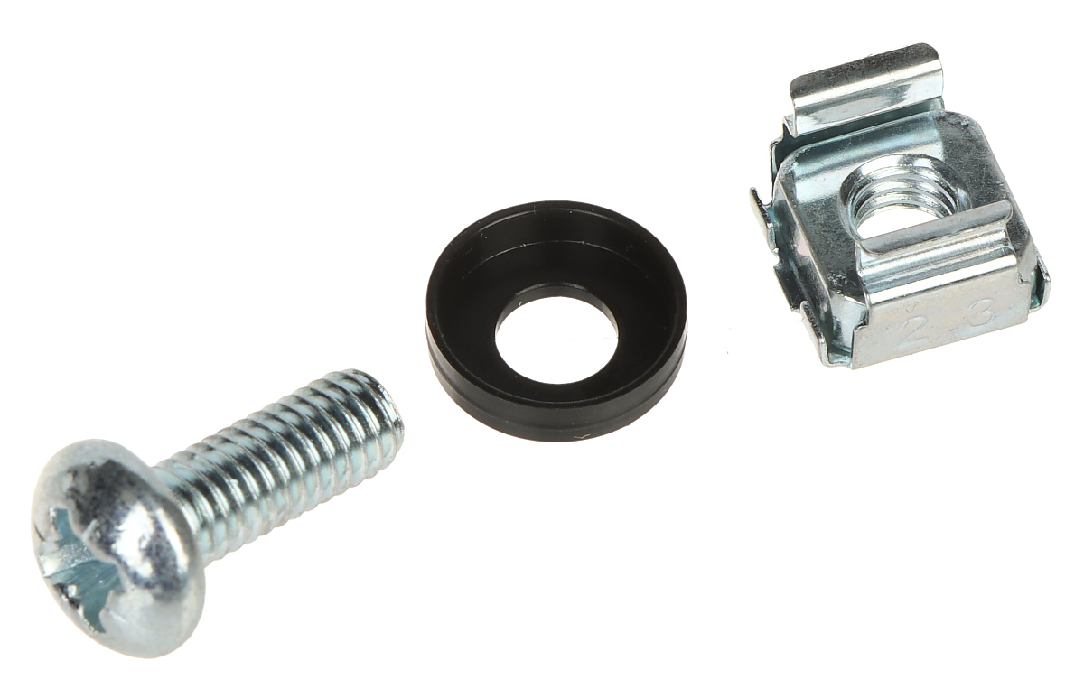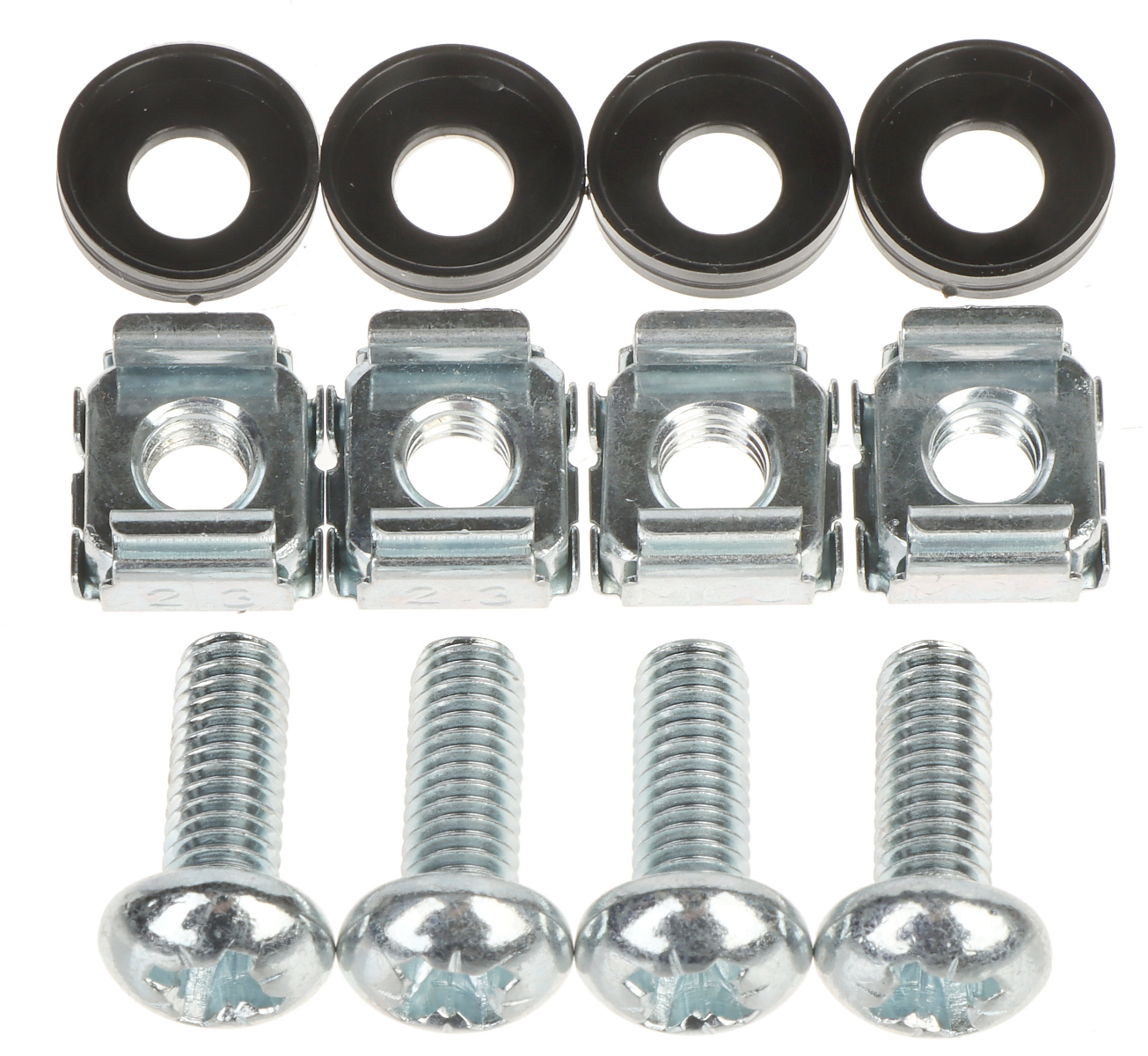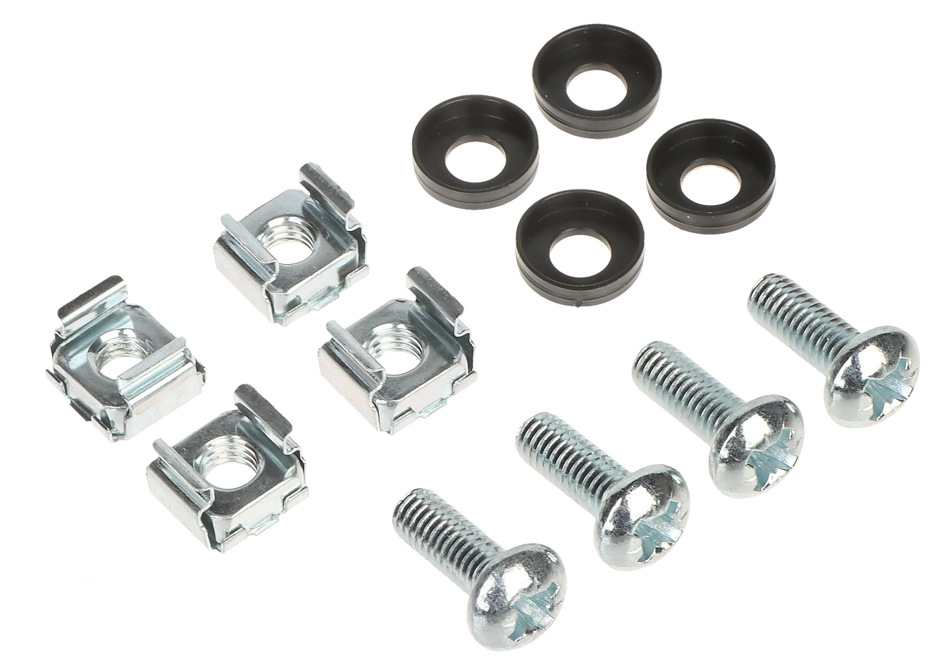 Package includes: 4 x M6 screw, 4 x cage nut 4 x plastic shoulder washer, which protects the varnish coating of panels from damage during tightening the screws ;