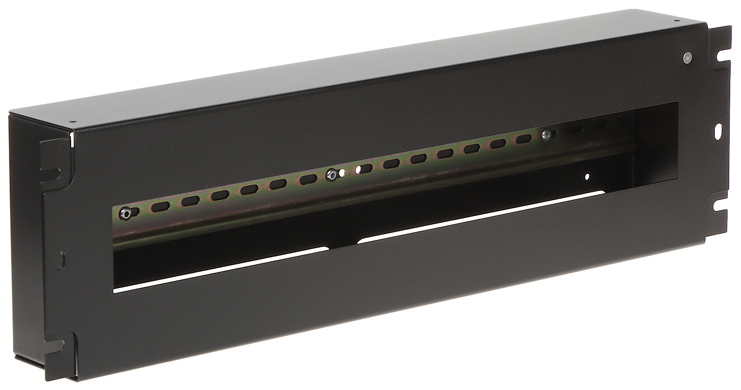 The enclosure with a DIN rail for RACK cabinets is intended for mounting equipment located inside DIN enclosures, for RACK 19" cabinets; The enclosure can accommodate max. 22 fuses, 1 S wide.;