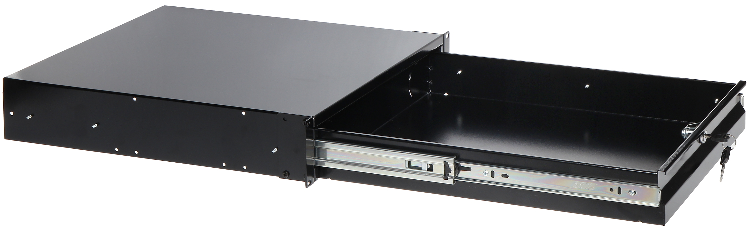 The shelf is used to keep loose items in a RACK cabinet; Height: 2 U ; Internal depth: 450 mm ; Mount: four-point ; Application: Rack 19" - depth ≥ 600 mm ; Main features: The shelf is locked with a key ;