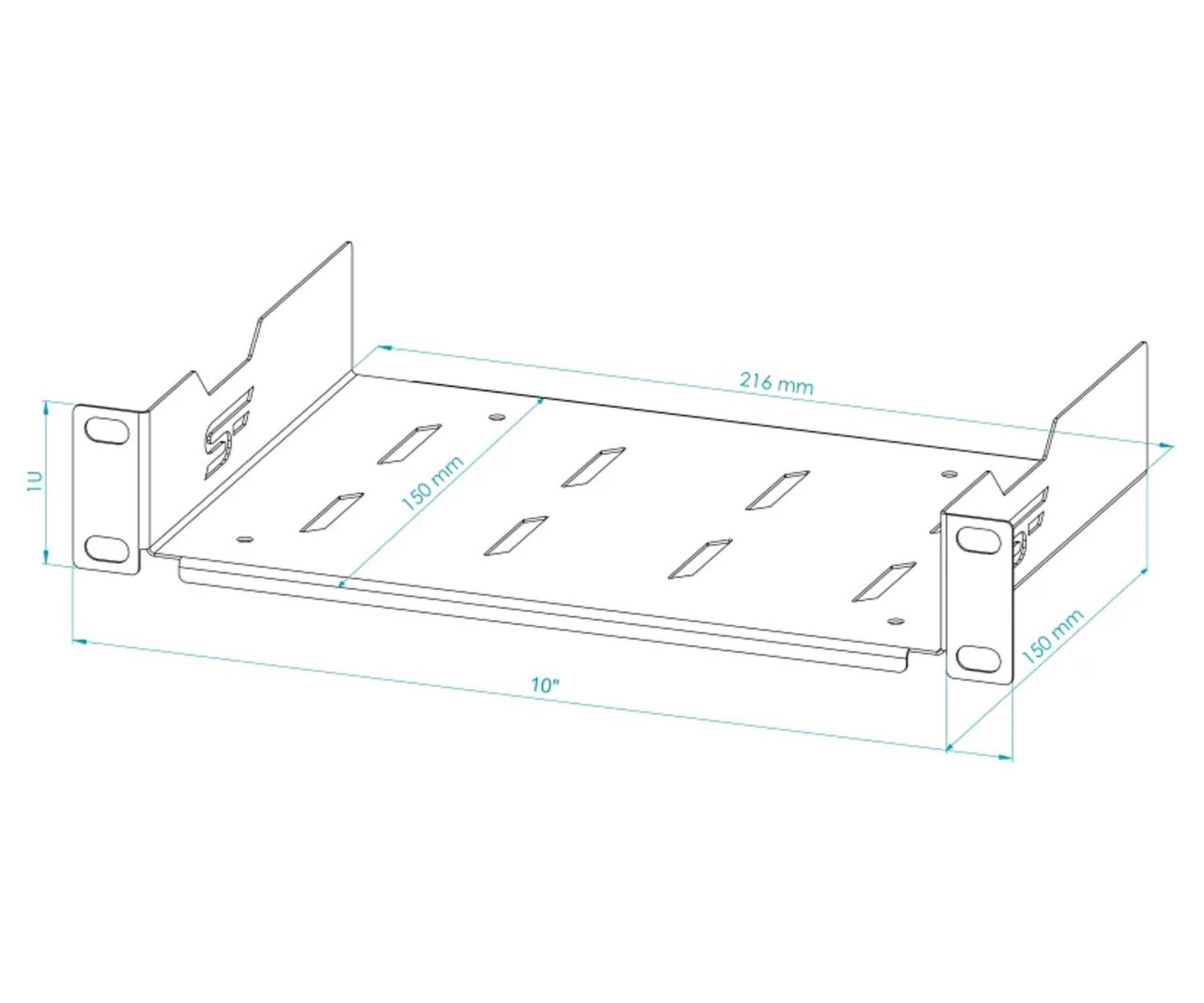 The shelf for the RACK 10" cabinet, designed for devices with housings which don't support the RACK cabinet mounting standard; Width: 10 " ; Depth: 150 mm ; Mount: four-point ; Application: Rack 10" - depth ≥ 160 mm ;