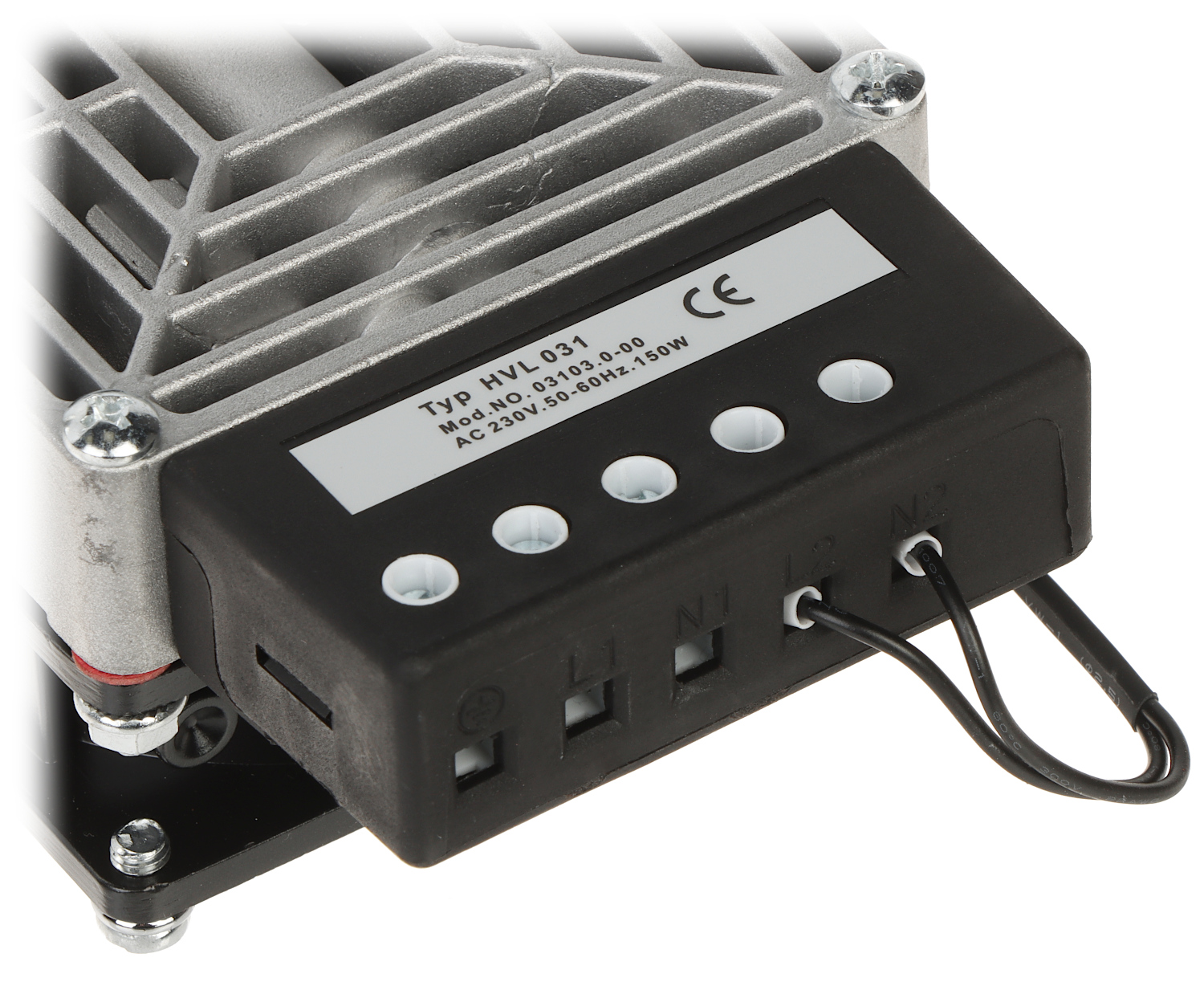Radiator: Aluminum - Die-cast housing, Glass bead blasted surface ; Heating capacity: 150 W ; Connectors: Cable terminals ; Power supply: 110 V ... 265 V AC/DC ; Assembly: DIN TS-35 rail ;