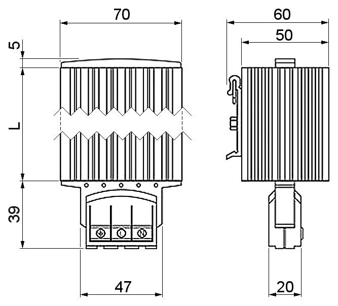 Heating element: | PTC thermistor - semiconductor, self regulating |