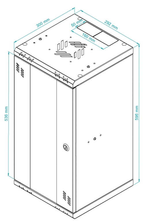 Internal width: 10 " ; Internal height: 12 U ; External width: 292 mm ; External height: 596 mm ; External depth: 300 mm ; Holes for fan coolers: 105 x 105 mm ; Color: Gray ; Weight: 5 kg ;