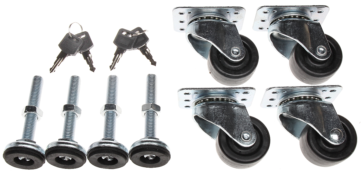 • The cabinet moves on the lockable castors, stabilizing by twisting 4 leveler legs