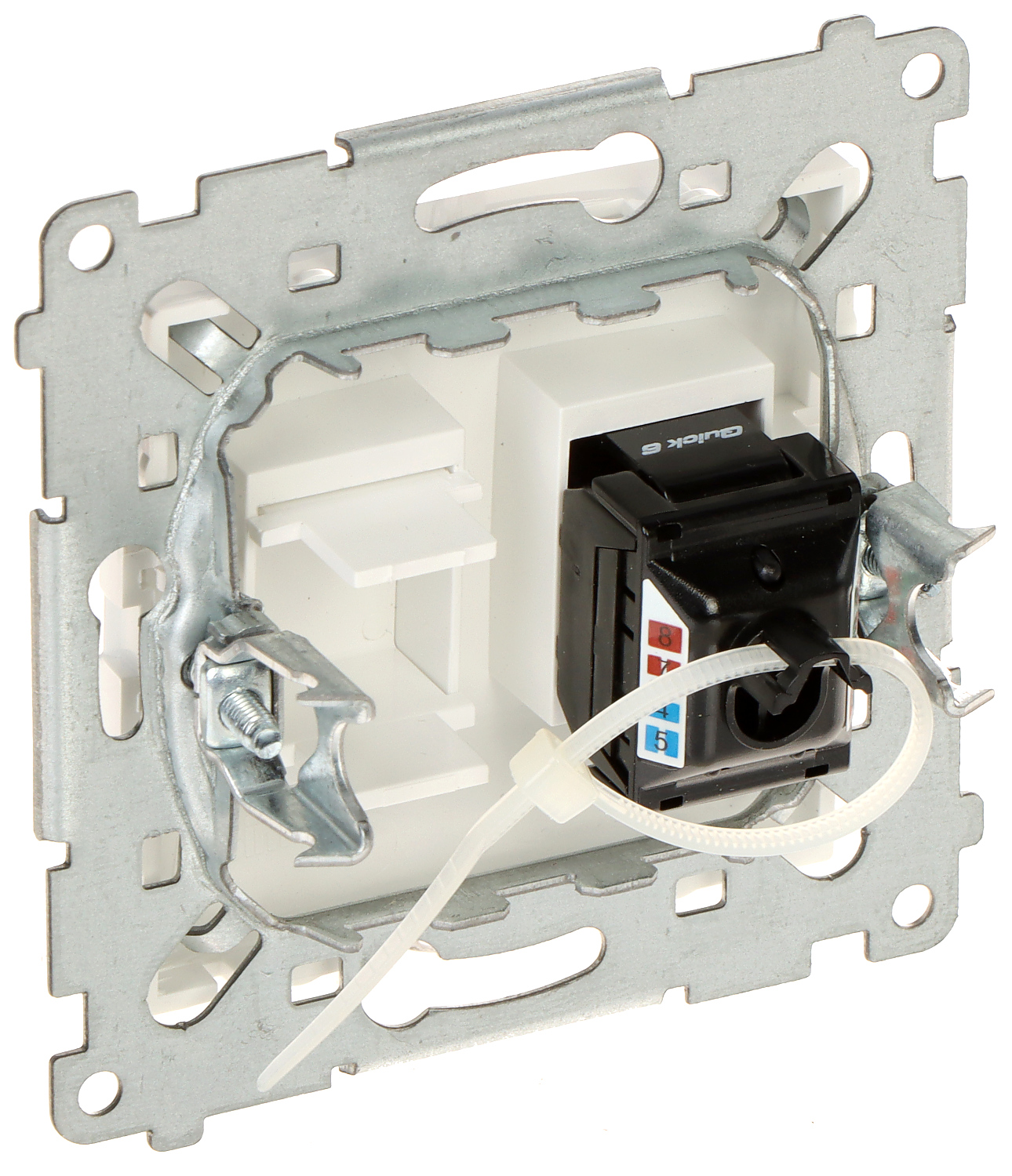 Mount: Flush-mounted, Claw or screw mounting ; Sockets type: 1 pcs RJ-45 - UTP cat. 6 ; Color: White (RAL 9003) ;