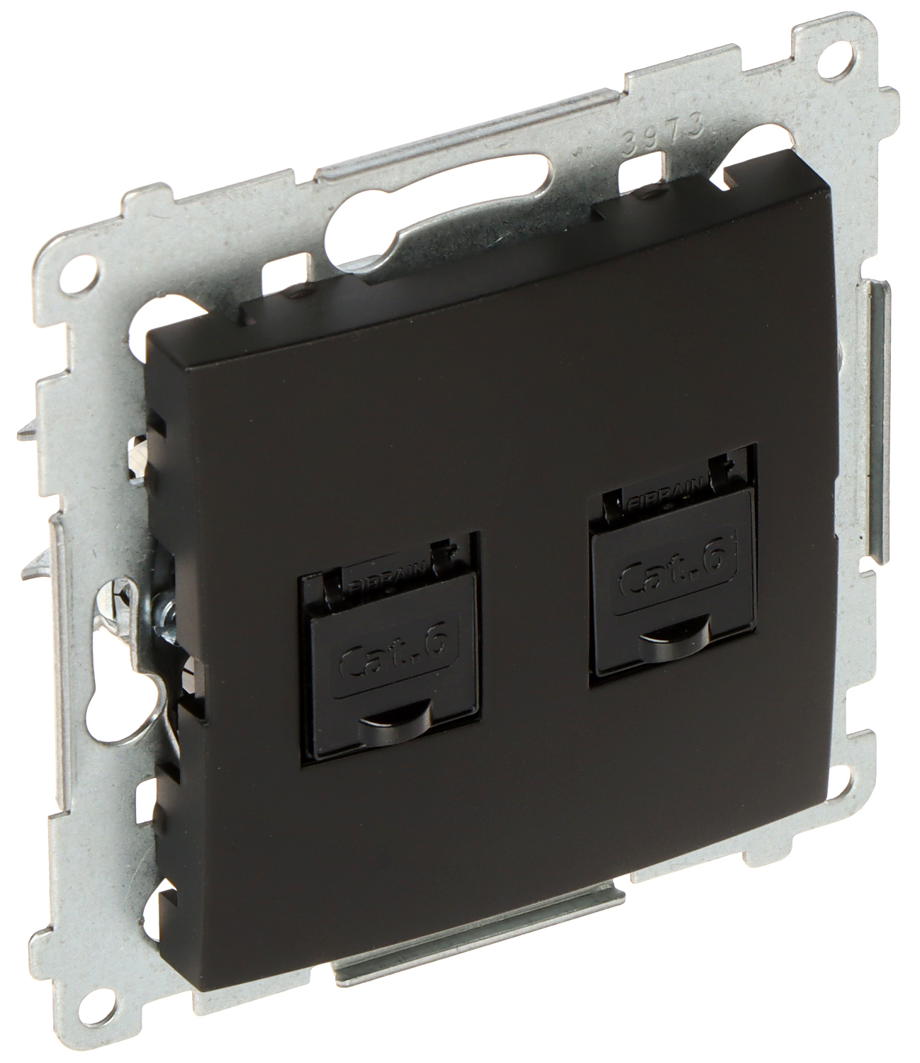 Mount: Flush-mounted, Claw or screw mounting ; Sockets type: 2 pcs RJ-45 - UTP cat. 6 ; Color: Matt black ;