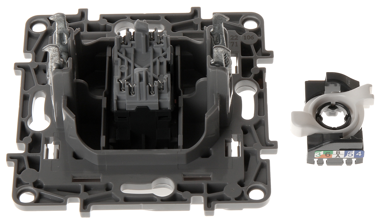 Mount: Ø 60 mm (flush mounting box), Claw or screw mounting ; Application: RJ-45 ; Main features: It is compatible with Category 5e, ;