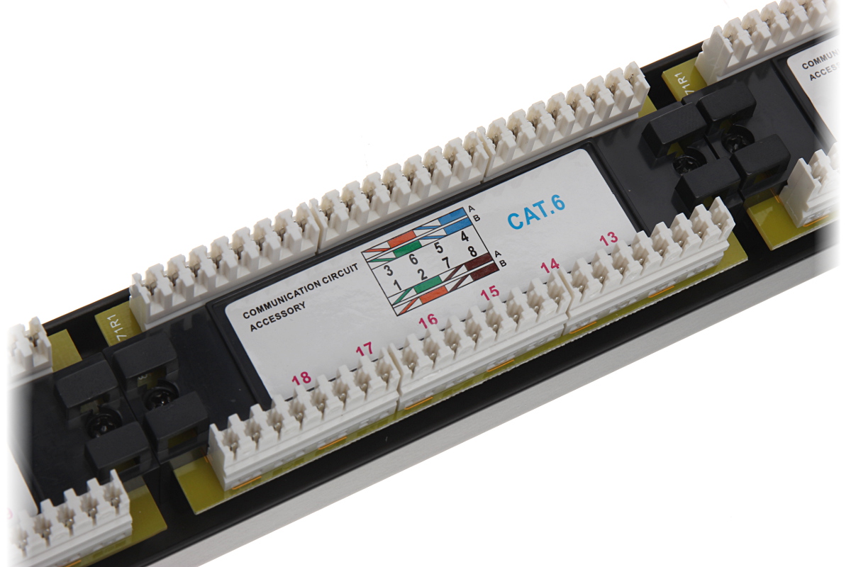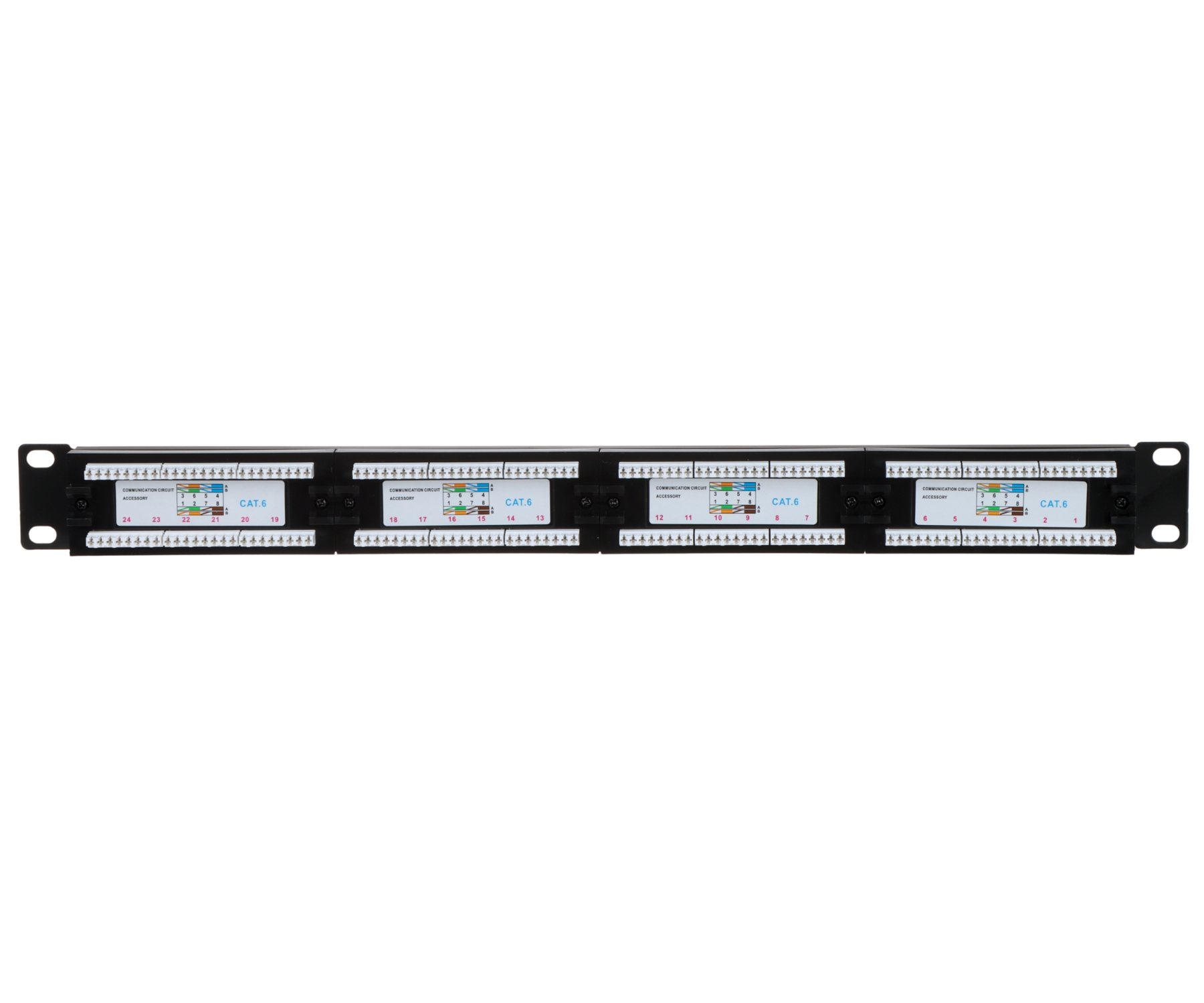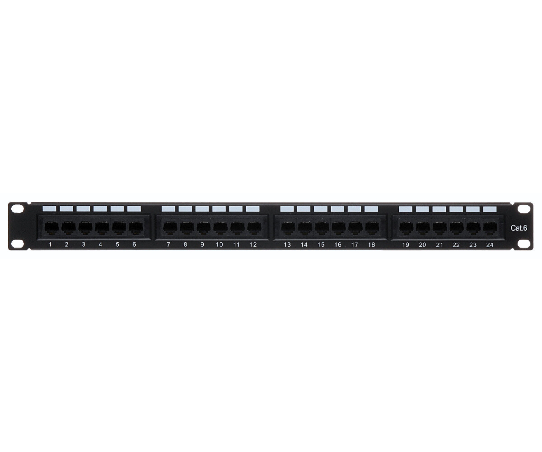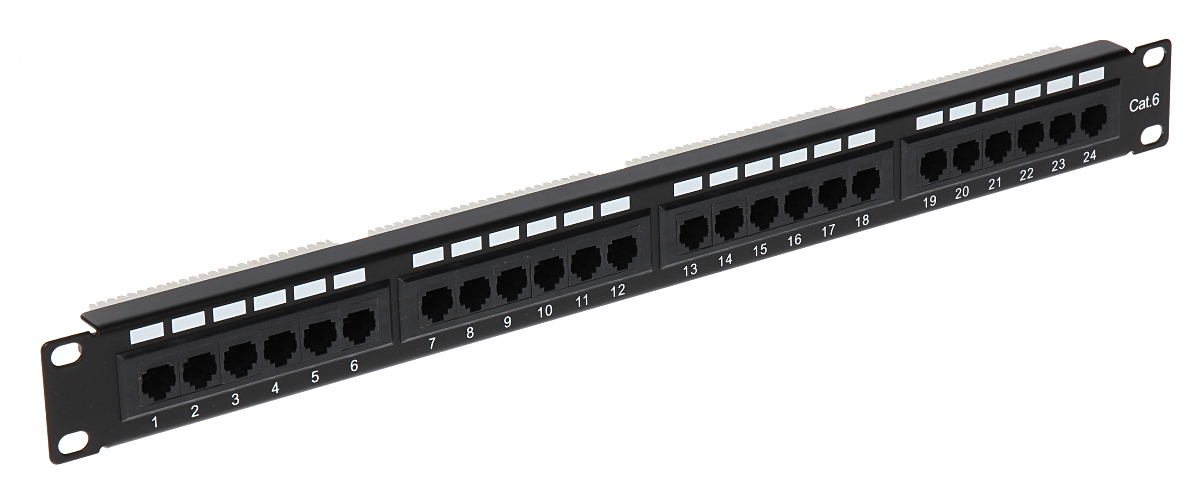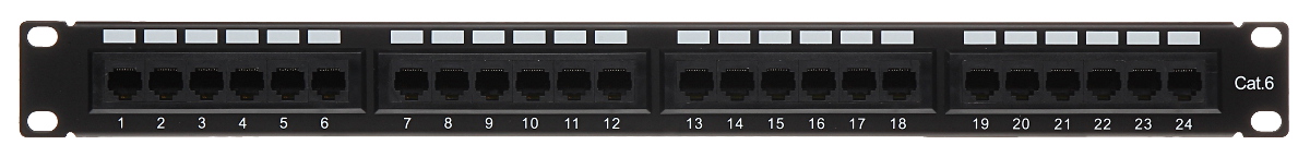 Patch panel is a concentrator of structural cabling UTP cat.6; Width: 19 " ; Height: 1 U ; Number of ports: 24 pcs ; Main features: It is compatible with Category 6 ;