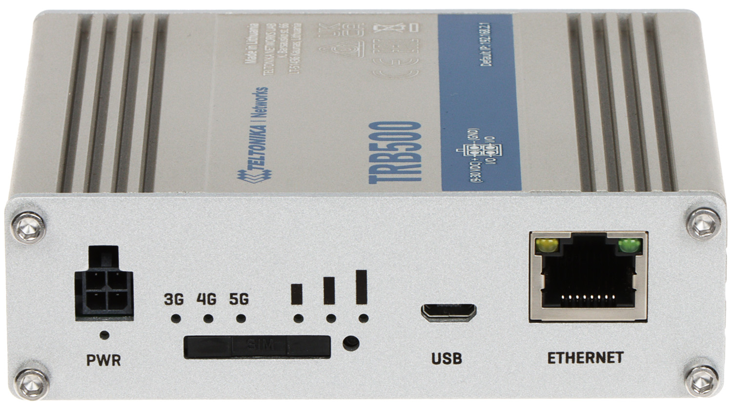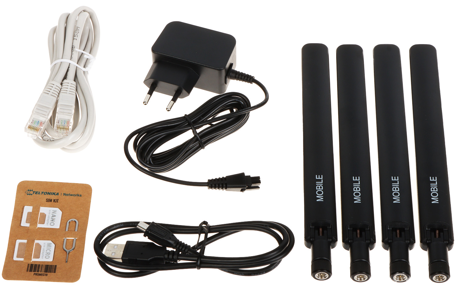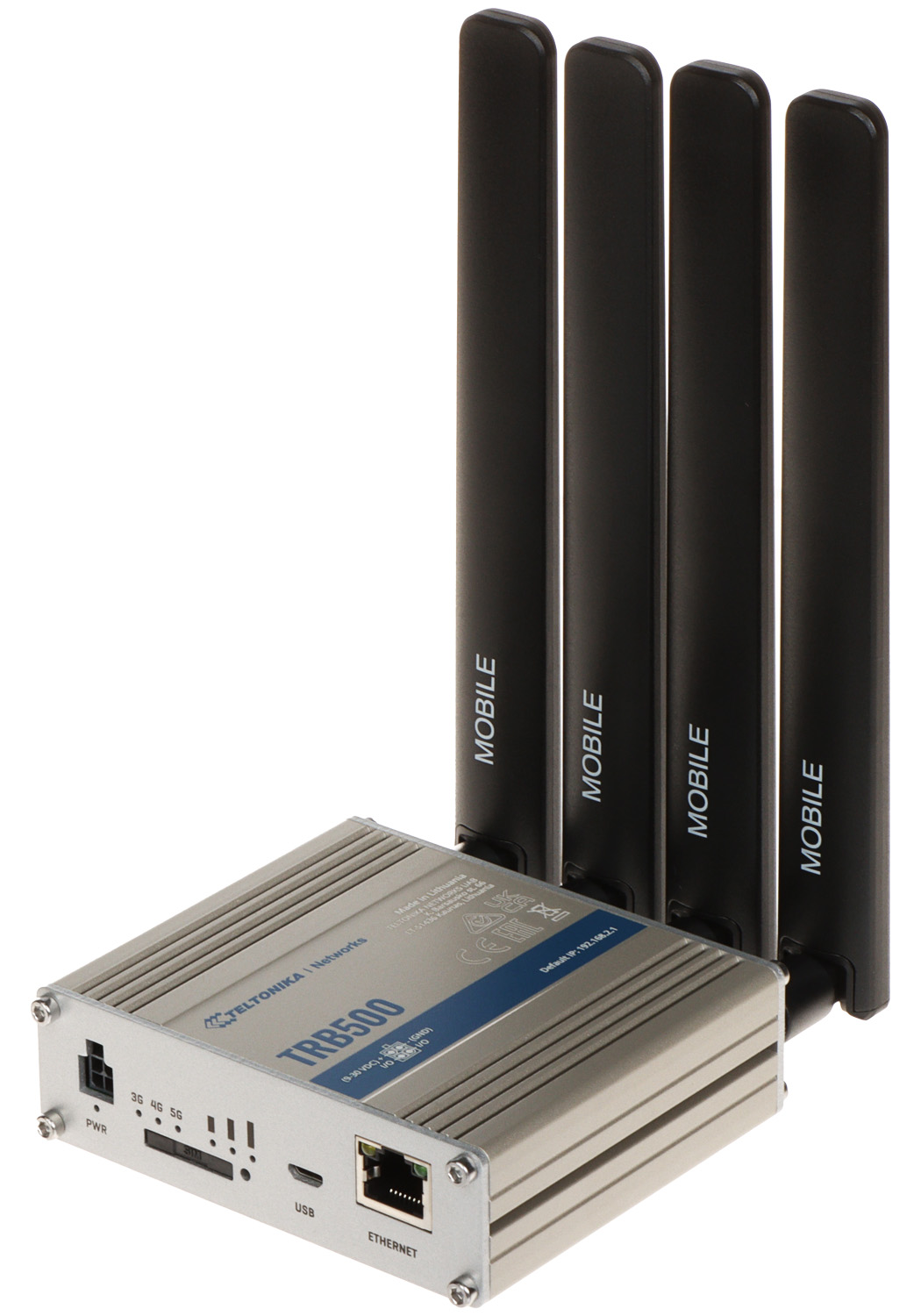 Frequency range: 5G/4G/3G : 617 ... 960 MHz, 1710 ... 2690 MHz, 3300 ... 6000 MHz ; Antenna type: 4 x Omnidirectional antenna 5G/4G/3G ; Standards: 5G Sub-6 SA/NSA, LTE Cat. 20, 3G WCDMA ; Baud rates: 5G Sub-6 SA/NSA : 2.1 / 3.3 Gb/s DL 4x4 MIMO, 900 / 600 Mbps UL 2x2 MIMO, 4G LTE : 2 Gb/s DL, 200 Mbps UL, 3G : 42 Mbps DL, 5.76 Mbps UL ; SIM card slot: 1 x Mini SIM – 2FF ; USB port: micro USB ; Main features: Support for VoIP technology, Support for IoT (Internet of Things) systems, , 4-pin industrial power socket Wide range of supported supply voltages ;
