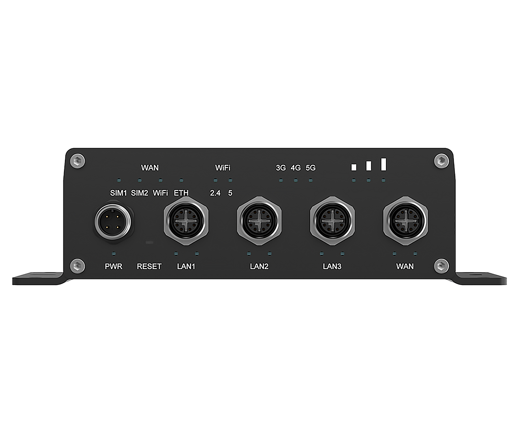 | LED indicators: | Power, 4 x Link/Act - Ethernet, SIM 1, SIM 2, WiFi, Ethernet, 2.4 GHz, 5 GHz, 3 x Signal indicator, 3G, 4G, 5G |