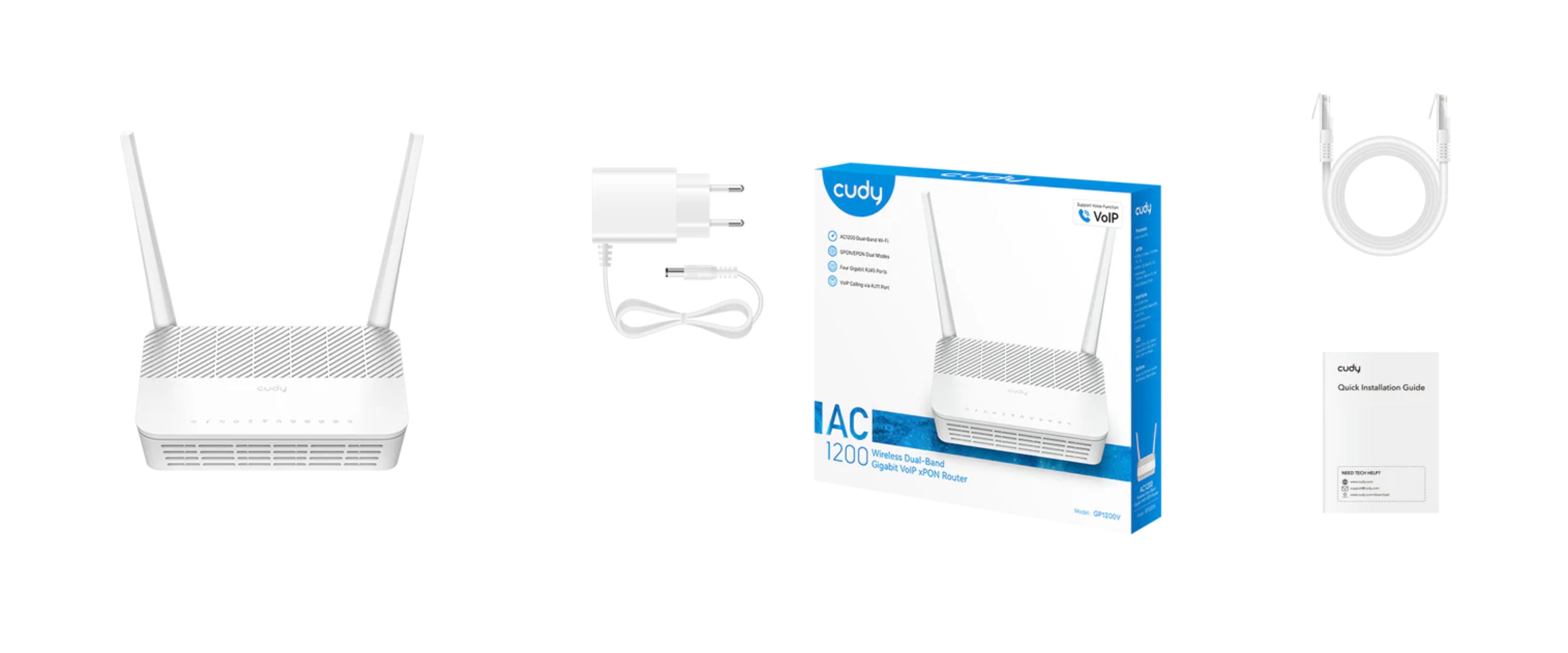 Frequency range: 2.4 GHz, 5 GHz ; Antenna type: 2 x Omnidirectional antenna - Integrated ; Baud rates: 300 Mbps + 867 Mbps ; LAN ports: 1 x SC/APC 1 x 10 / 100 / 1000 - LAN/WAN 3 x 10 / 100 / 1000 Mbps - LAN ; Management interface: Web browser The Cudy free application on iOS ; Operation modes: xPON Router WiFi ;