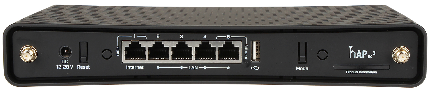 LED indicators: | Power, 2.4 GHz WLAN, 5 GHz WLAN, 4 x Ethernet, WAN |