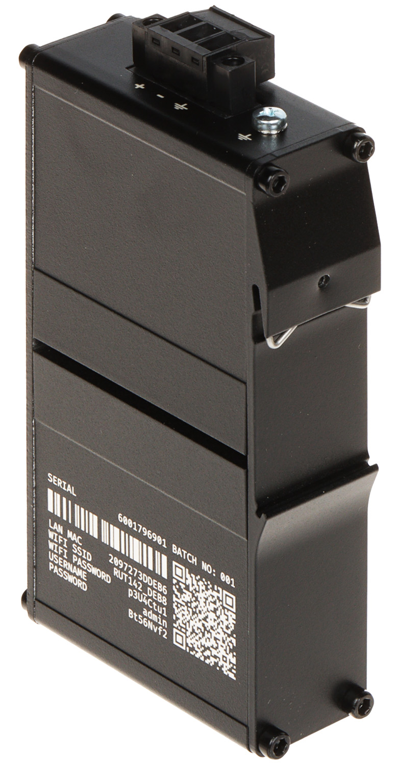 Frequency range: 2.4 GHz ; Antenna type: SMA-RP socket - without antenna ; Standards: IEEE 802.11 b/g/n ; LAN ports: 1 x 10 / 100 Mbps ; WAN interface: 1 x 10 / 100 Mbps ; Management interface: Web browser, Teltonika RMS application ; Main features: Support for Mesh technology, Support for VoIP technology, Ability to work as a Hotspot, Support for IoT (Internet of Things) systems, Communication interface - RS-232 port, Mounting on DIN rail, 3-pin industrial power socket, Wide range of supported supply voltages ;