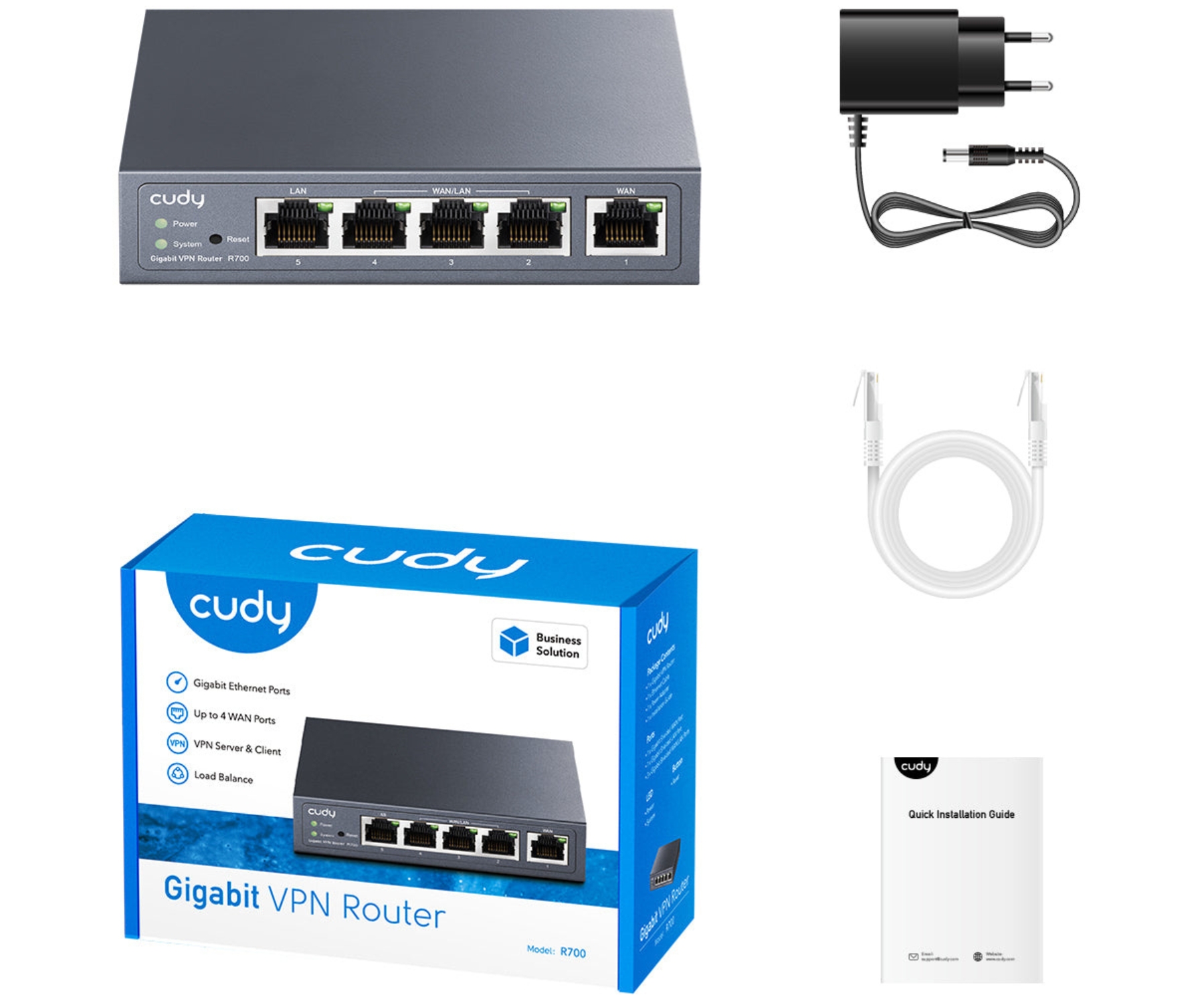 Standards: IEEE 802.3, IEEE 802.3u, IEEE 802.3ab, IEEE 802.3x ; Device ports: 1 x LAN, 1 x WAN, 3 x LAN/WAN ; Main features: VPN networks: PPTP, L2TP, OpenVPN, WireGuard, IPSec, Zerotier ;