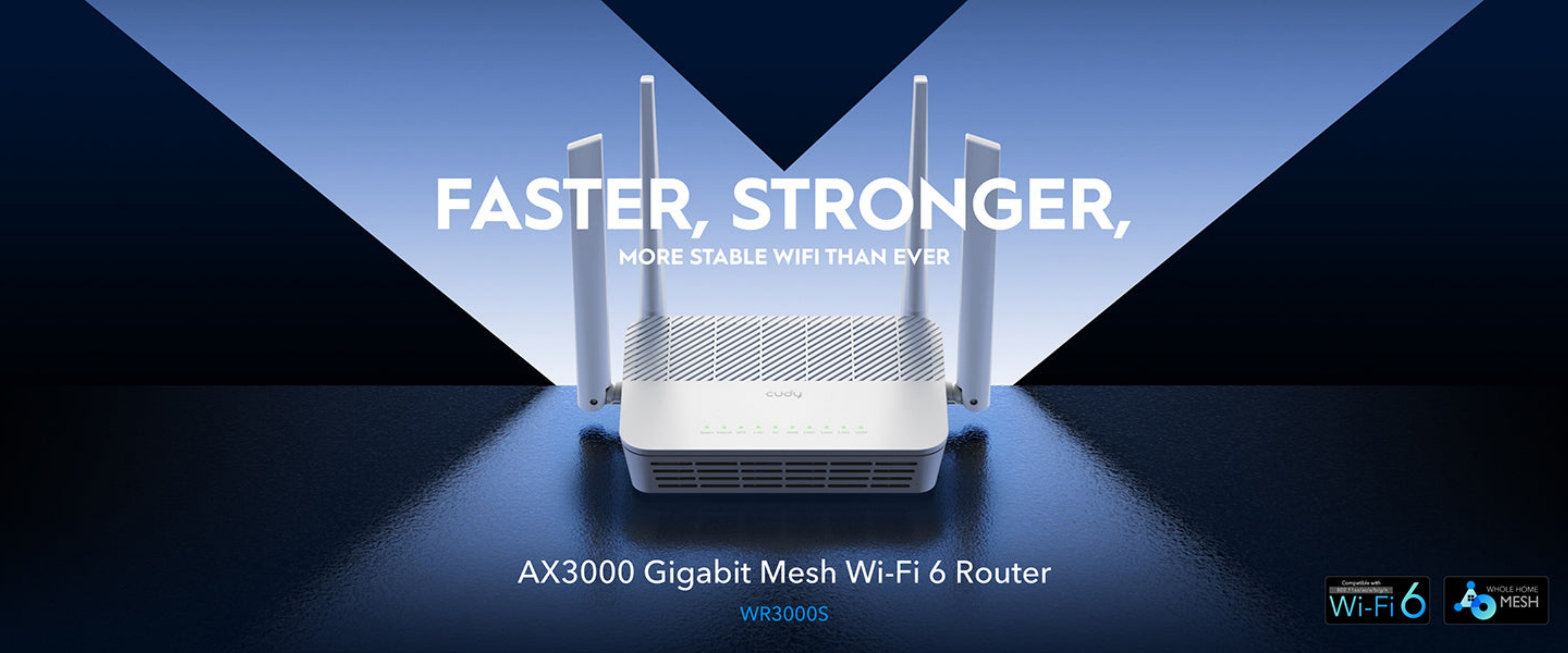 ROUTER WR3000S Wi-Fi 6 2.4 GHz, 5 GHz 574 Mbps + 2402 Mbps CUDY