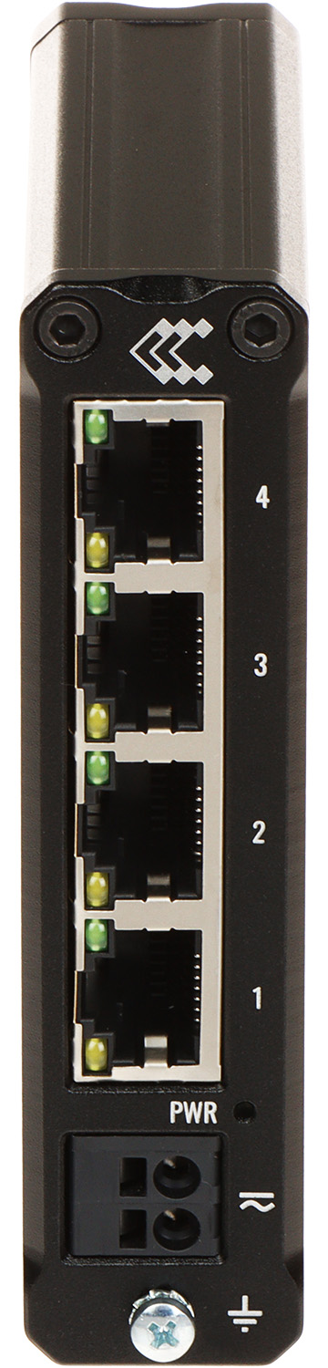 LAN ports: 4 x RJ45 ; Transmission speed: 10 / 100 / 1000 Mbps - 4 LAN ports ; Main features: Mounting on DIN rail, 2-pin industrial power socket, Wide range of supported supply voltages ; Power supply: 7 ... 57 V DC, 9 ... 40 V AC, Passive PoE input on port 1 ;