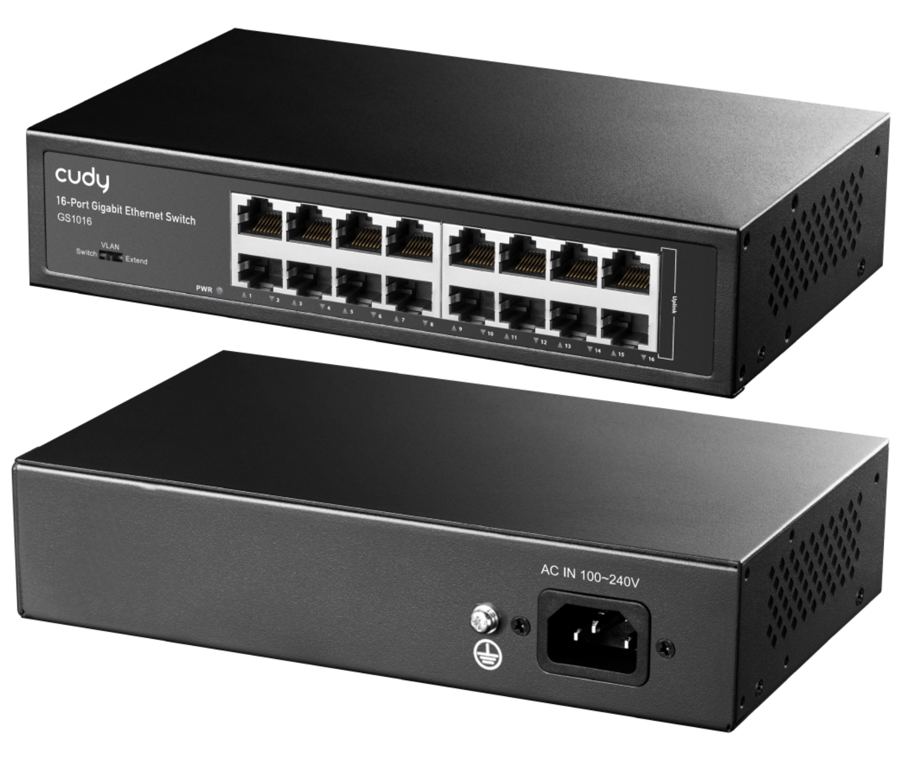 LAN ports: 16 x RJ45 ; Transmission speed: 10 / 100 / 1000 Mbps ; MAC addresses table: 8k ;