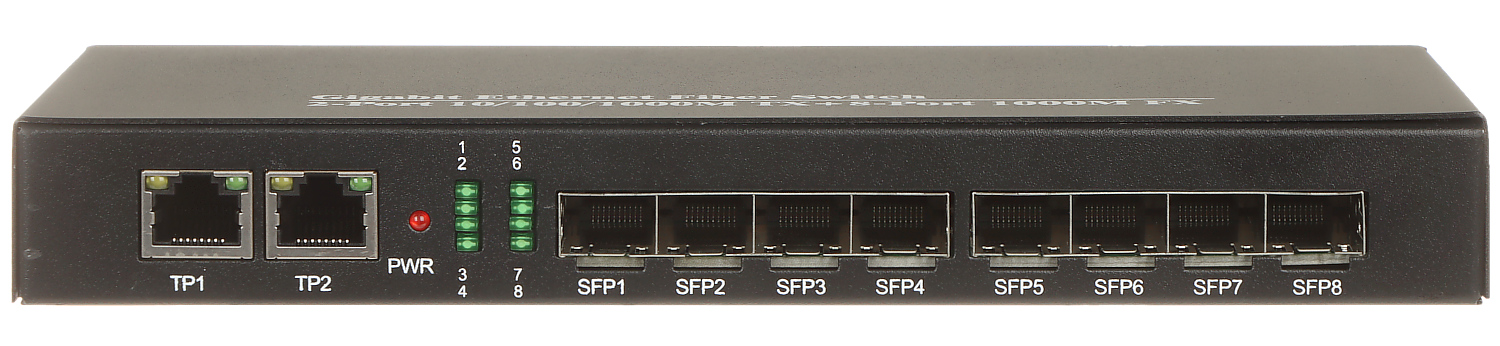 LAN ports: 8 x port SFP 1000 Base-X, 2 x RJ45 10/100/1000 Base-T ; Transmission speed: 10 / 100 / 1000 Mbps - 2 x LAN port, 1000 Mbps - 8 x port SFP ;