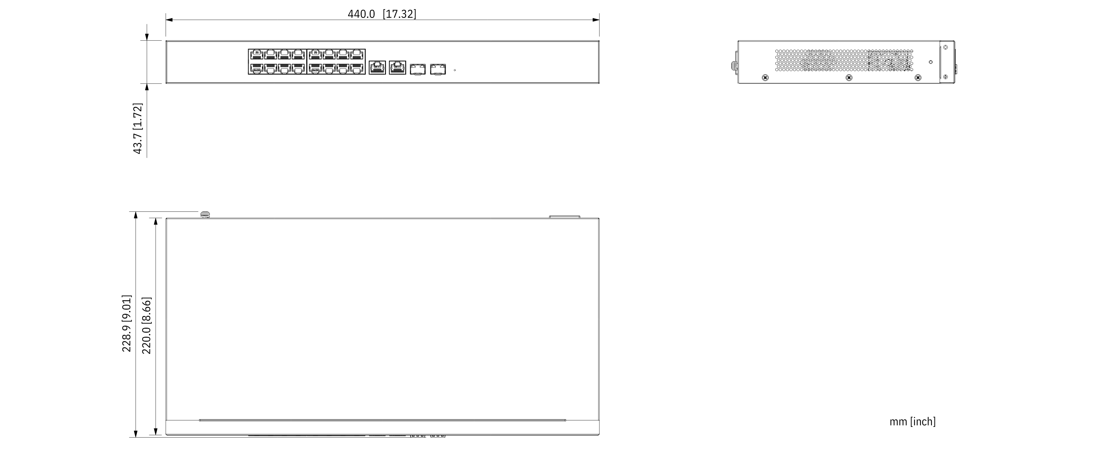 Dimensions: 440  x 220  x 44 mm, RACK 19", 1U